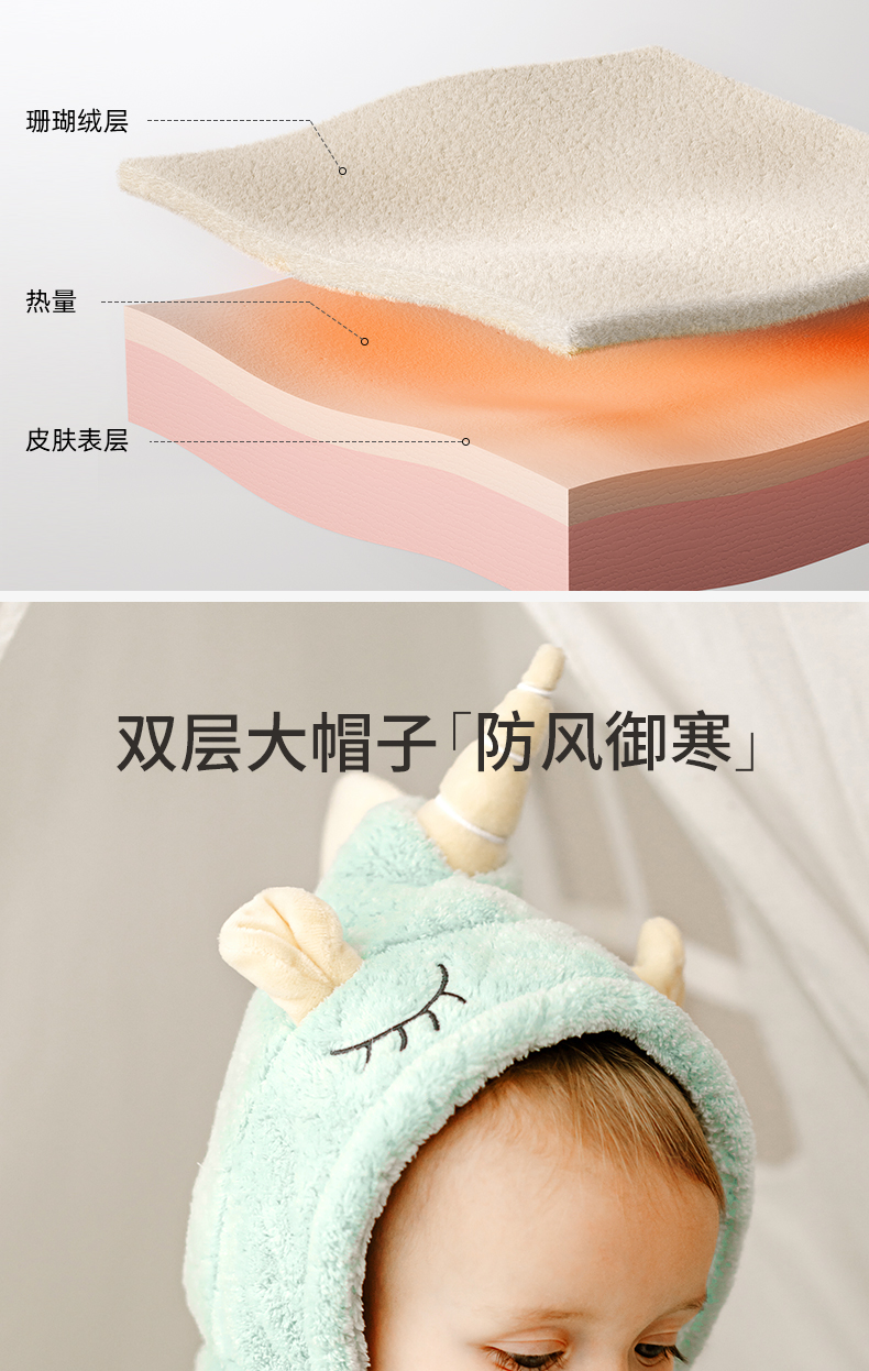 【洗浴用品】嫚熙儿童浴巾新生超软宝宝斗篷婴儿洗澡秋冬浴袍