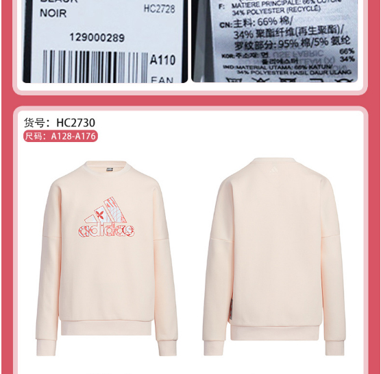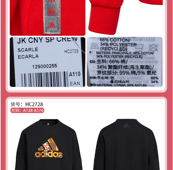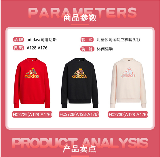 小阿迪22春新年款男童棉质加厚运动套头衫HC2728