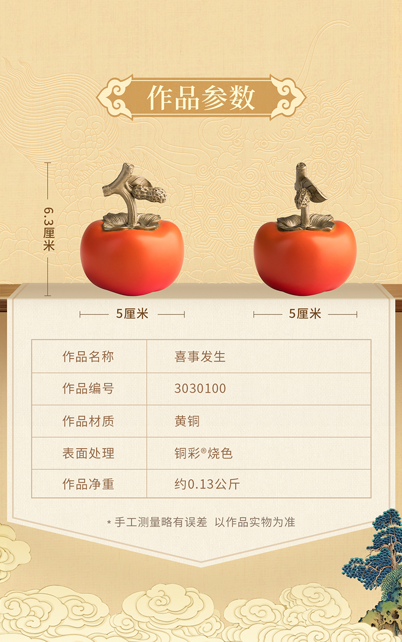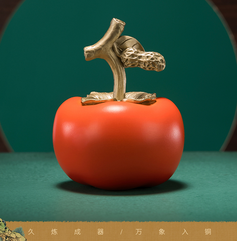 铜师傅《喜事发生》客厅桌面铜柿子摆件 家居装饰品 乔迁礼物