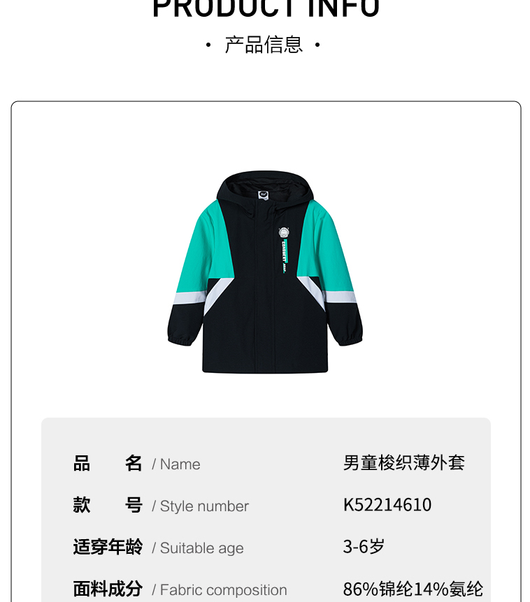 小361男童梭织薄外套儿童风衣幼儿园外衣K52214610