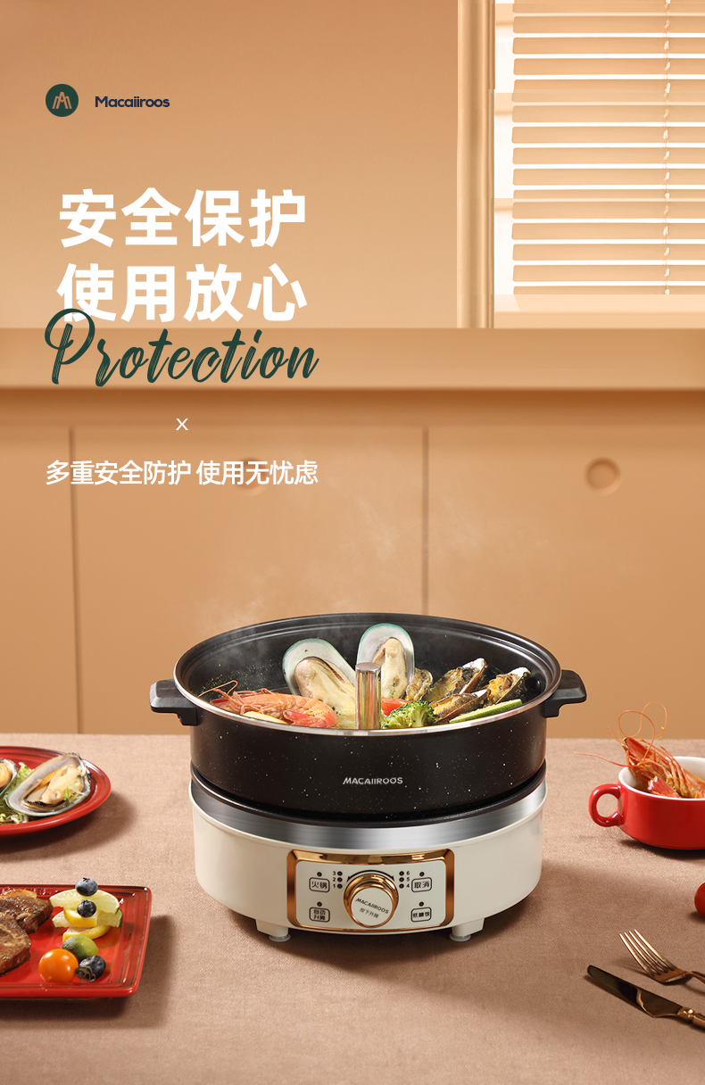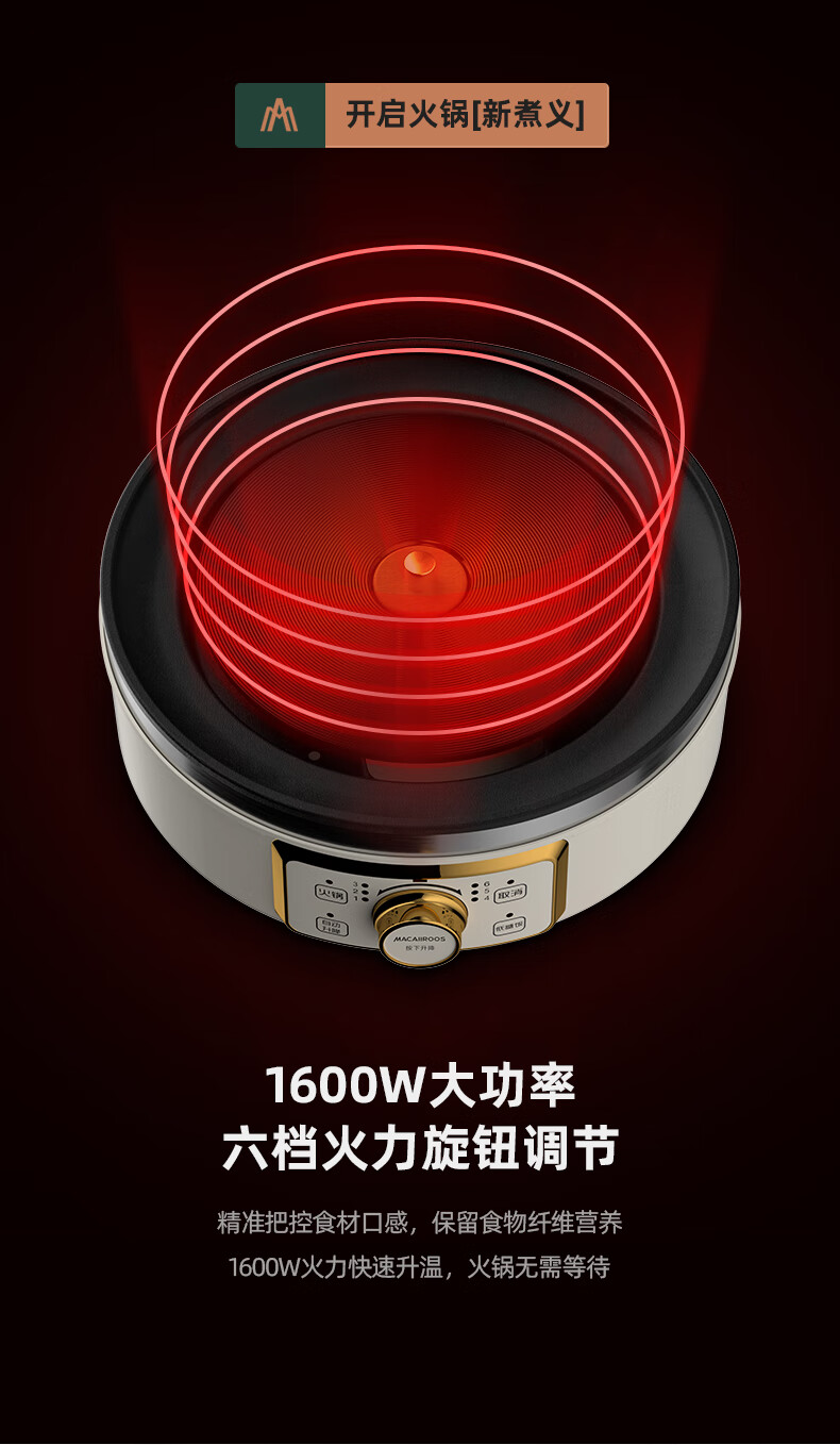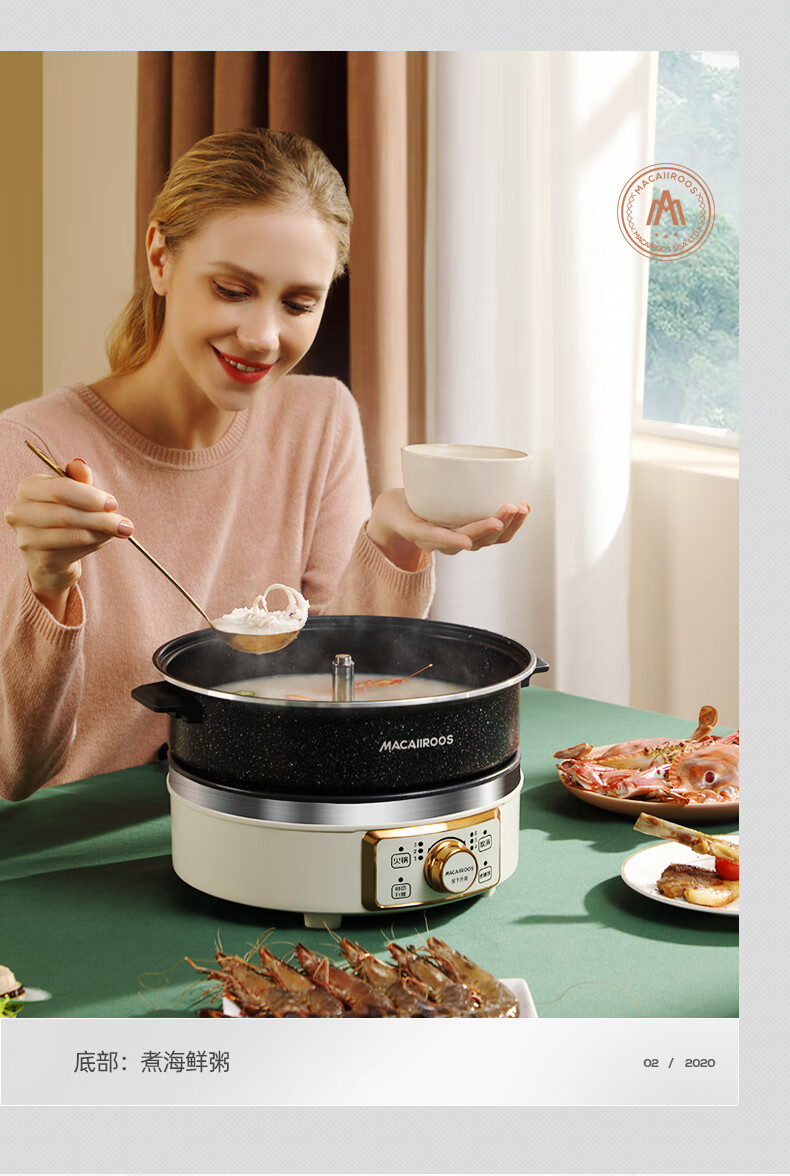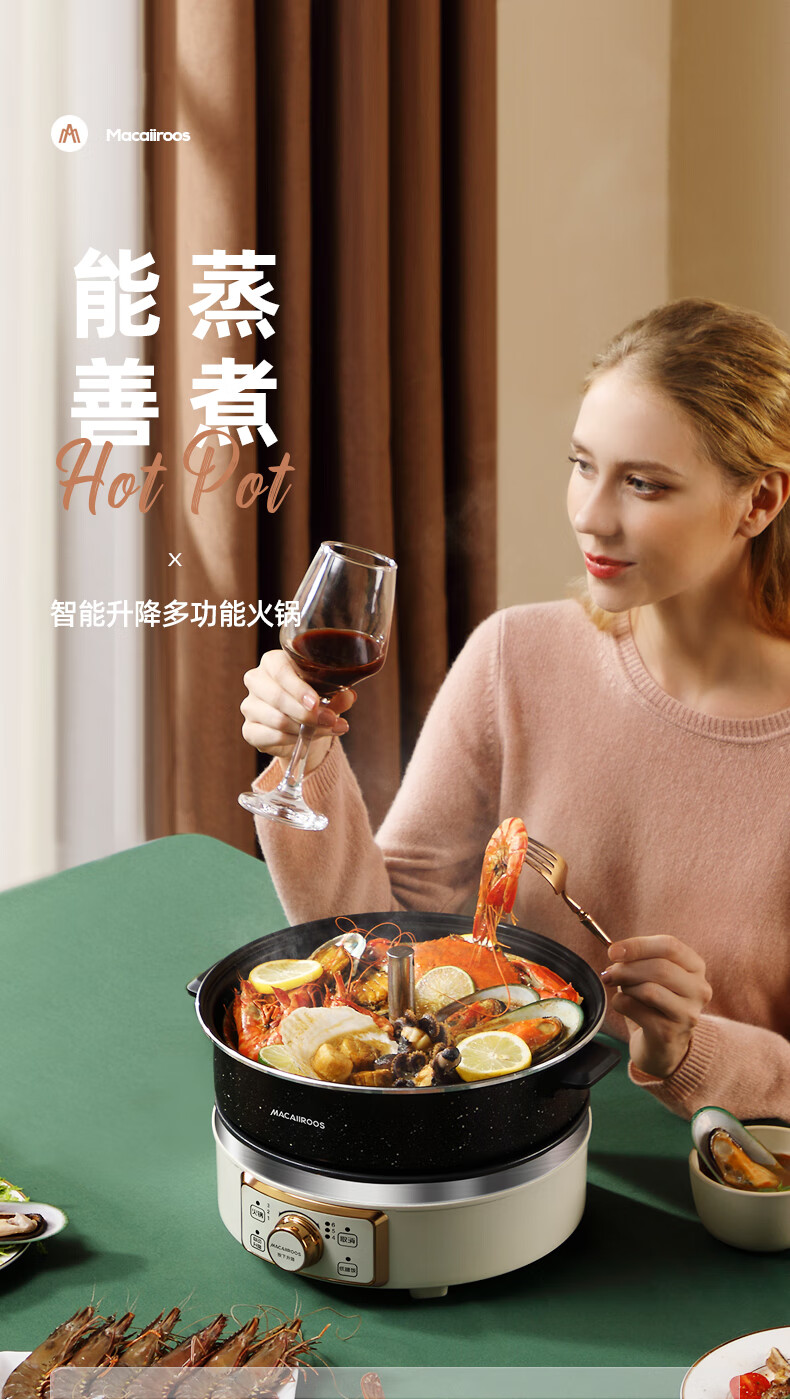 【小家电】迈卡罗MC-HG160A升降电火锅 分体式电热锅 家用多功能料理锅 电热蒸煮炖锅烧烤肉煎炒HF