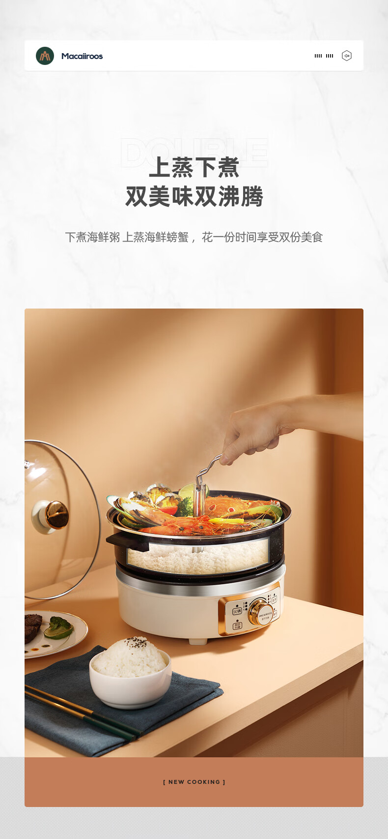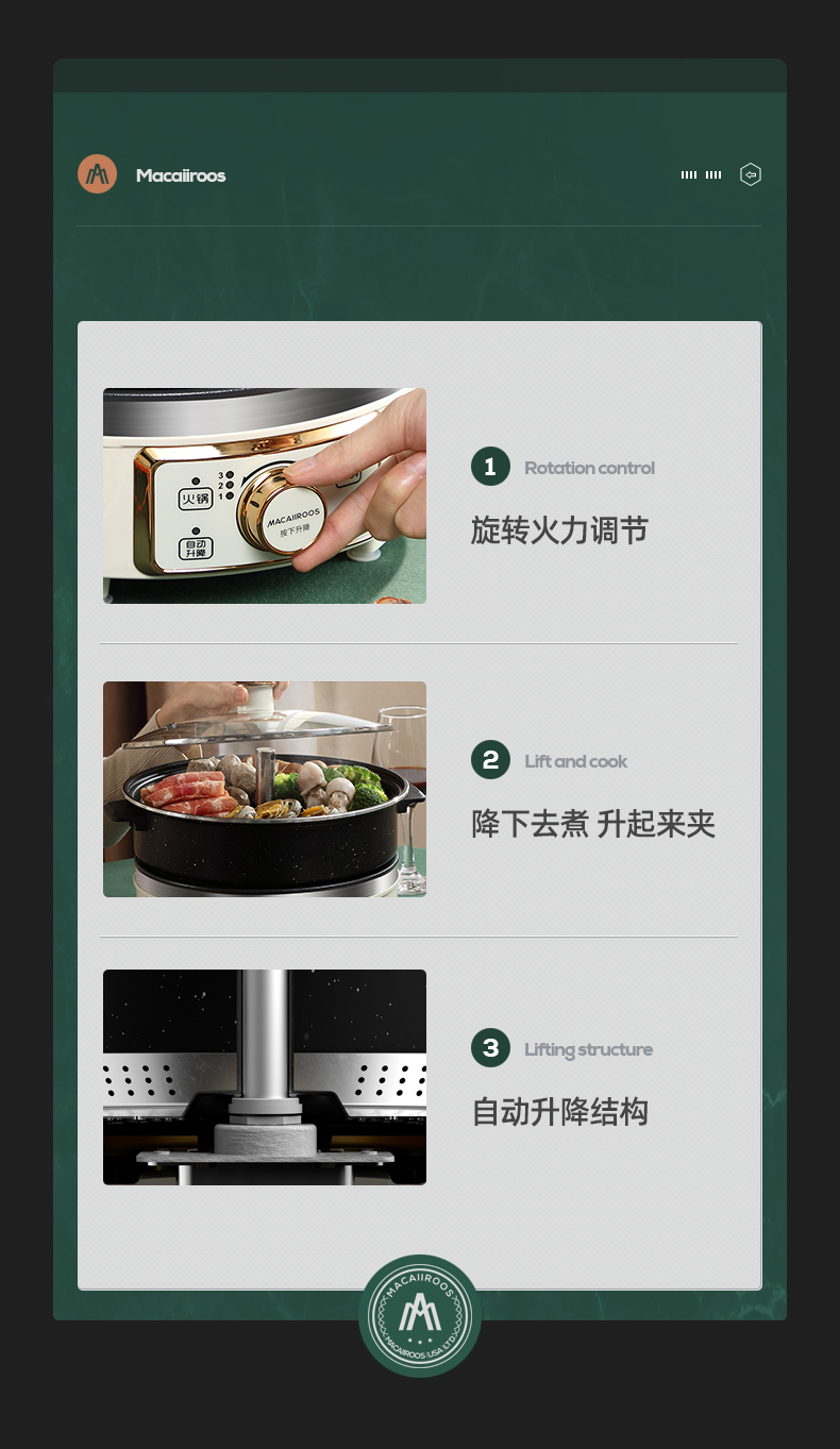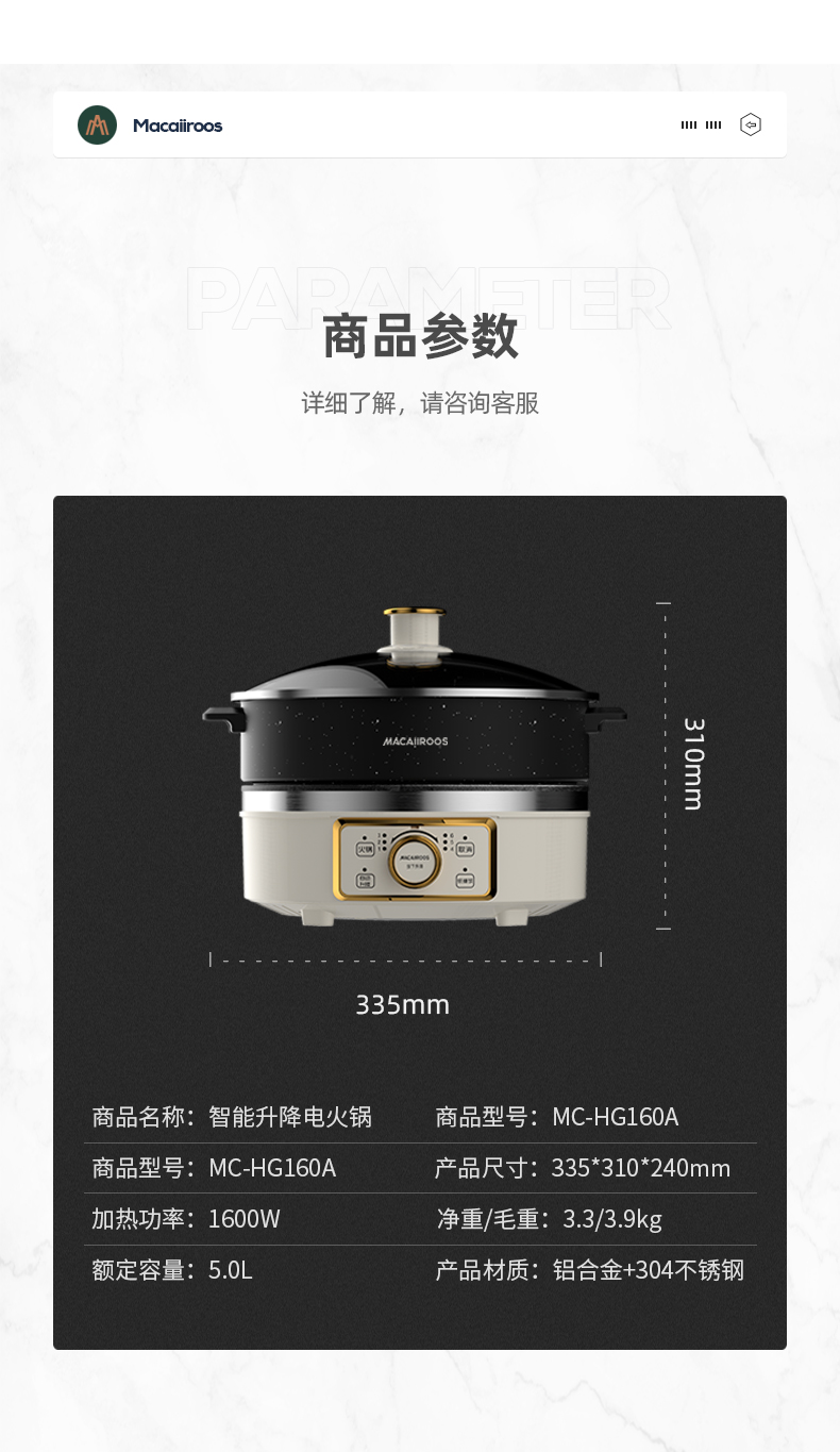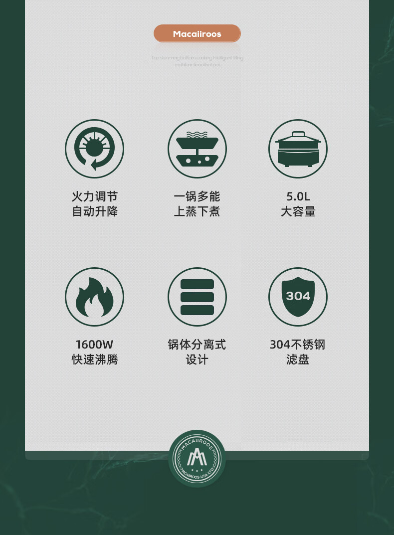 【小家电】迈卡罗MC-HG160A升降电火锅 分体式电热锅 家用多功能料理锅 电热蒸煮炖锅烧烤肉煎炒HF