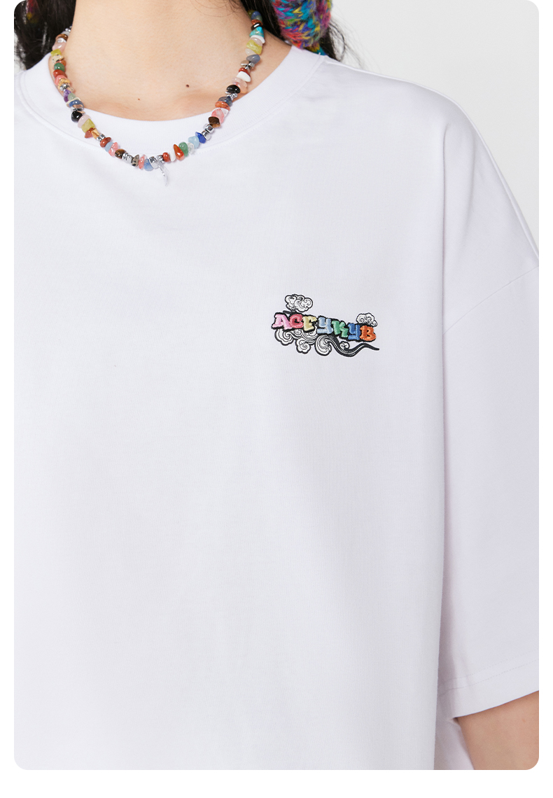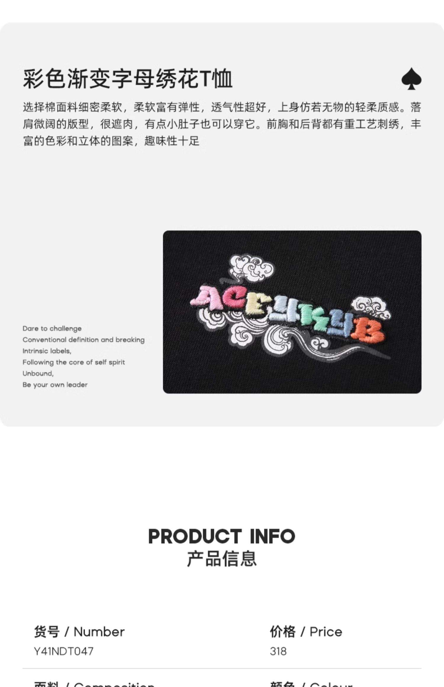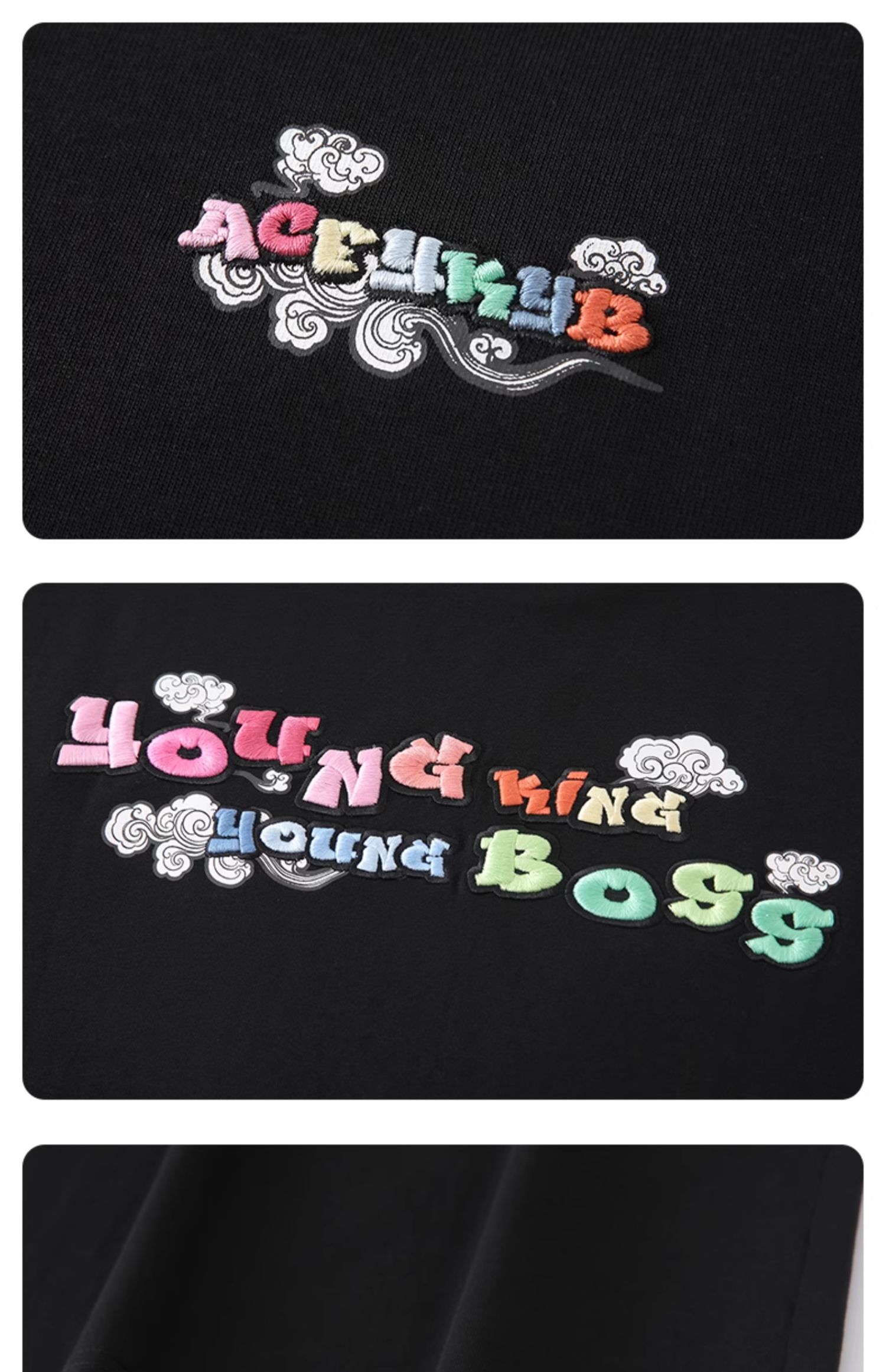 [139两件,刺绣款+幸运款组合]YKYB新款T恤重工彩虹刺绣2025夏基础宽松质感短袖潮牌情侣装上衣