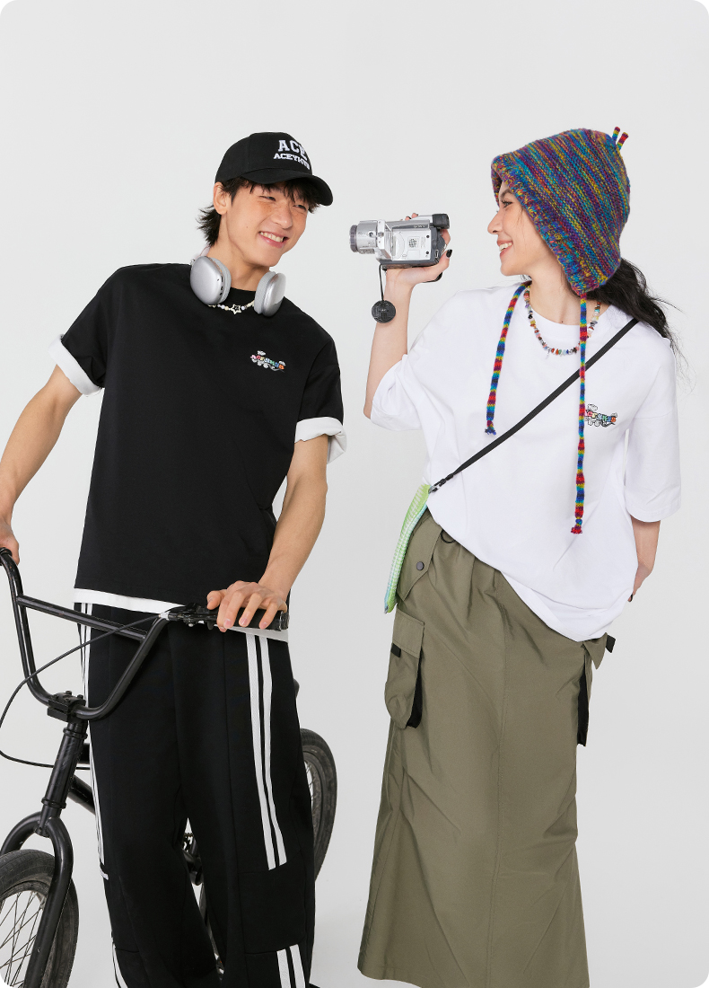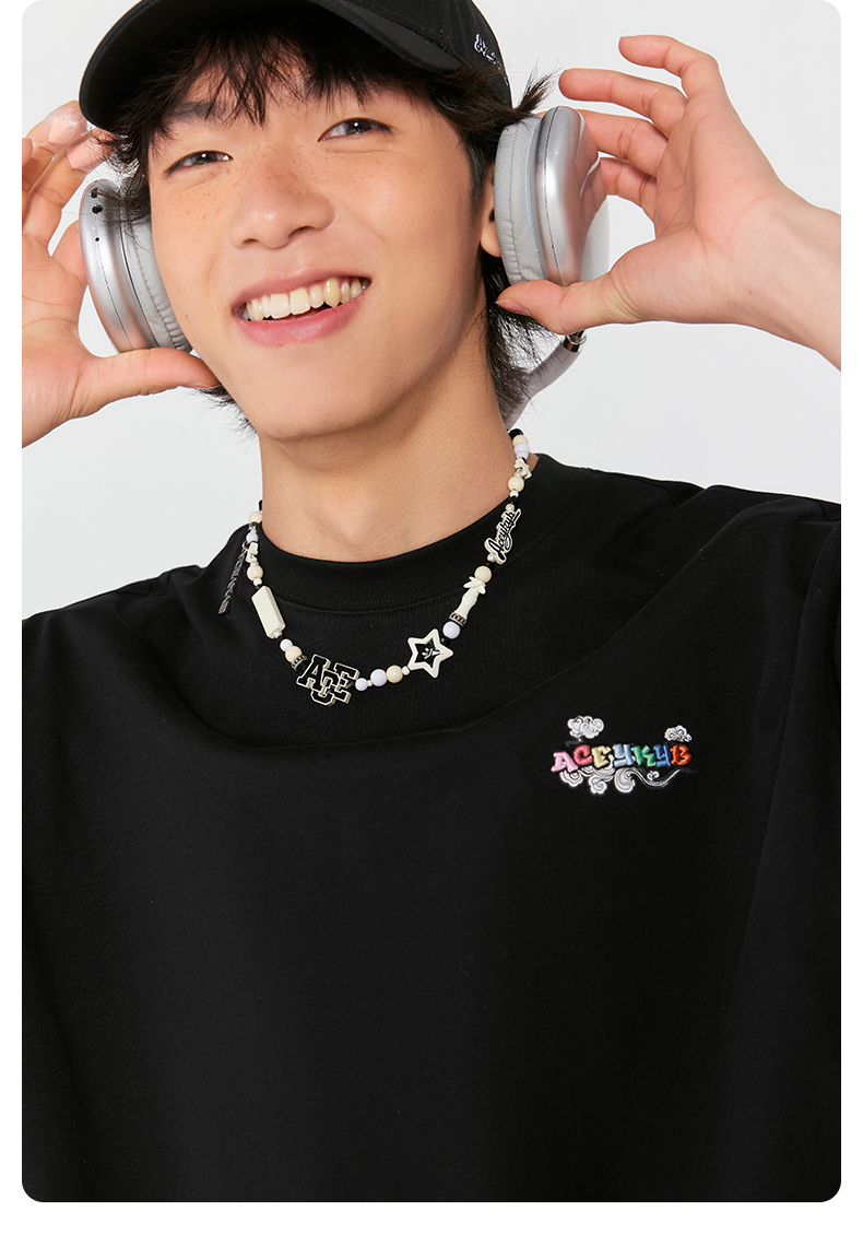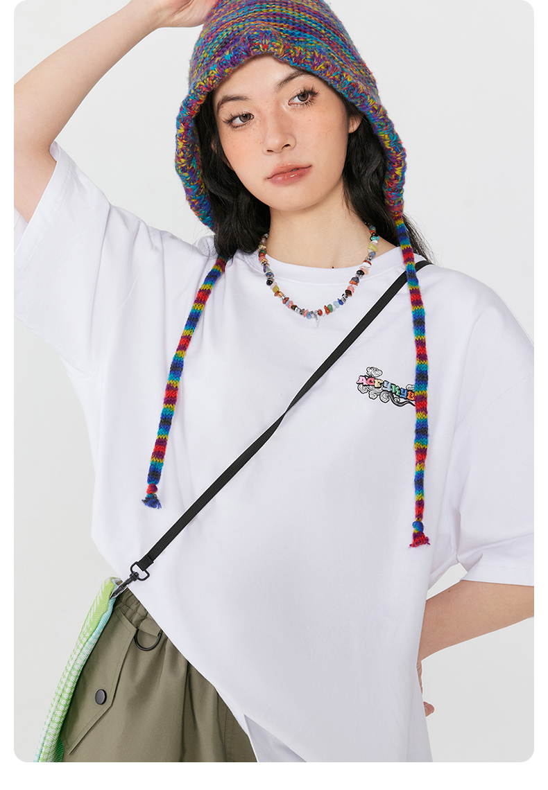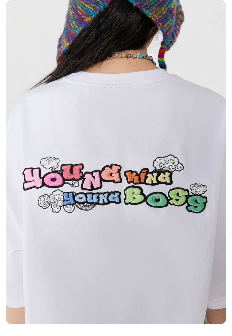 [139两件,刺绣款+幸运款组合]YKYB新款T恤重工彩虹刺绣2025夏基础宽松质感短袖潮牌情侣装上衣