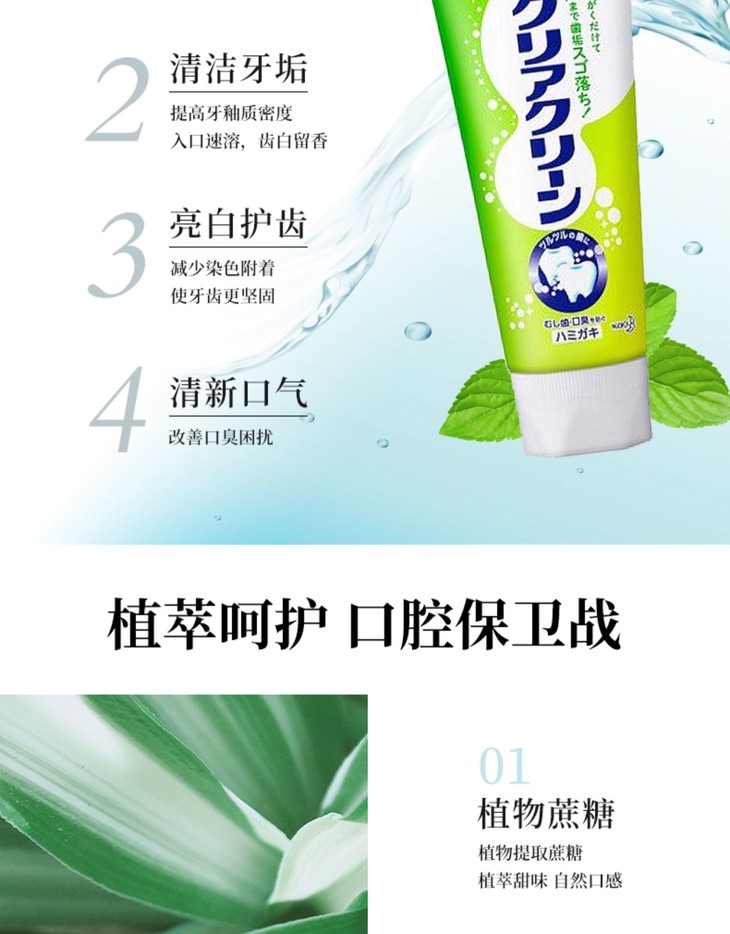 日本进口花王颗粒去渍除牙垢亮白美白口气清新牙龈护理药用型牙膏(超凉薄荷味) 120g(386205)