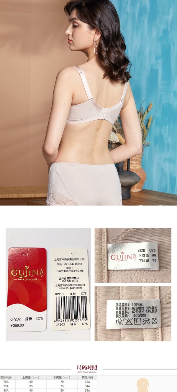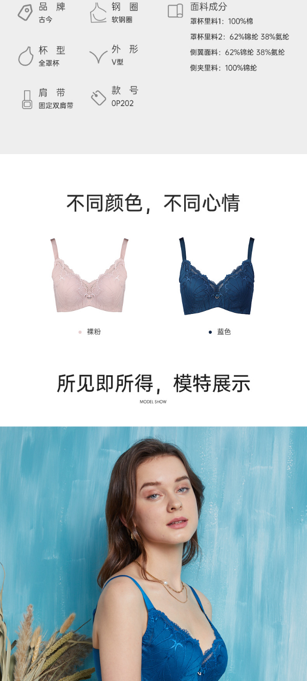 古今软钢圈内衣大码文胸大胸显小舒适包容侧收蕾丝0p202