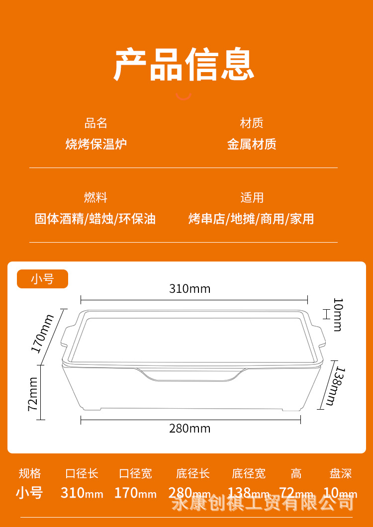 烧烤保温盘铝合金蜡烛酒精烤羊排不粘盘烧烤串商用烤串加热保温炉