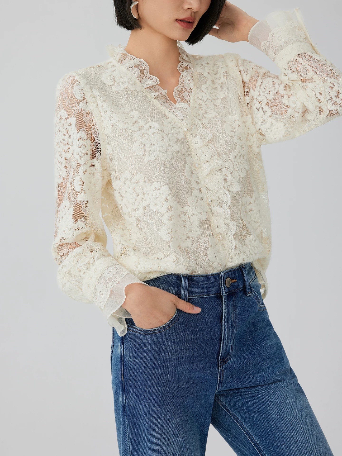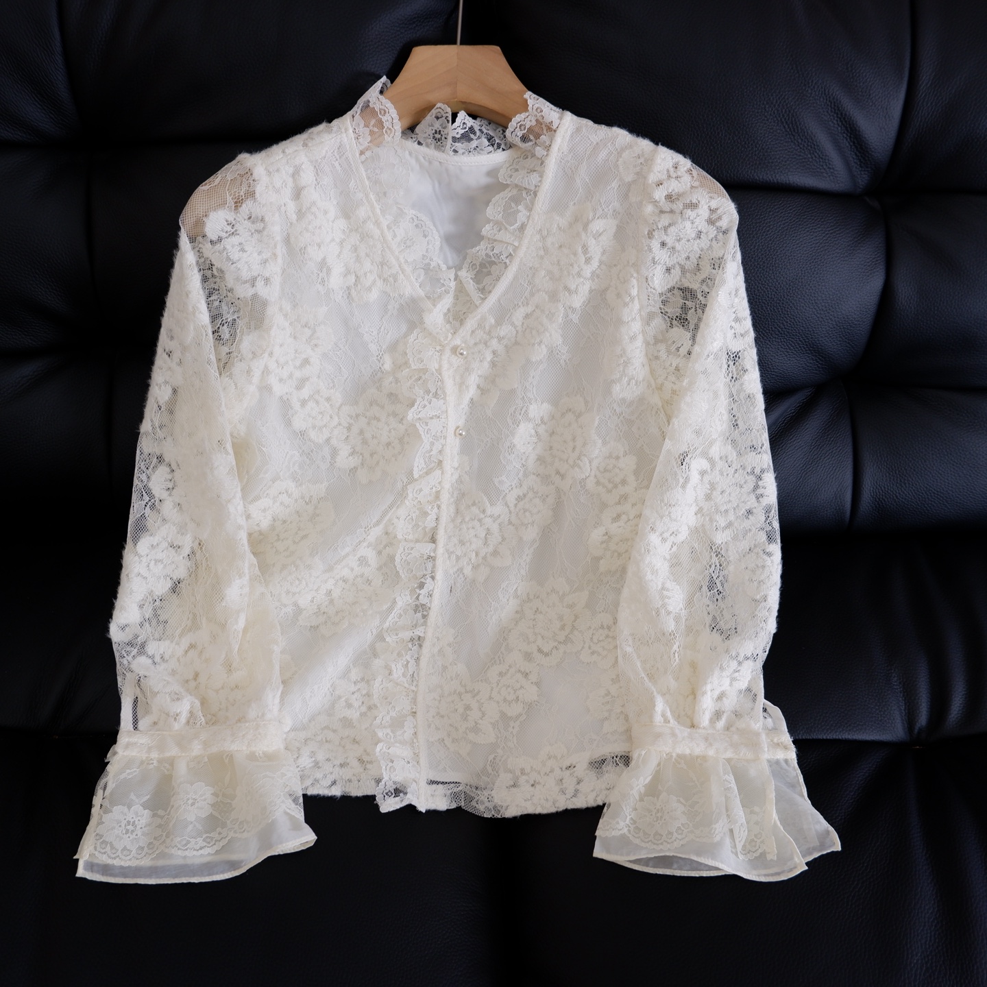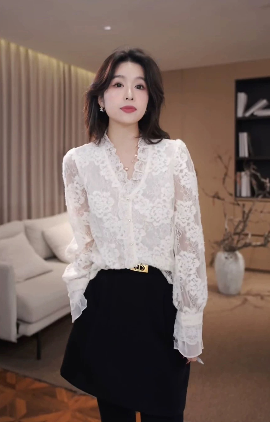 💰139元包邮, 【3350】水溶蕾丝~法式温柔风钩花丝拼接V领衬衫 纯属个人喜欢 很仙气飘飘的一款衬衫! 加入浪漫的法式蕾丝元素, 给简约的版型注入一抹浪漫灵魂