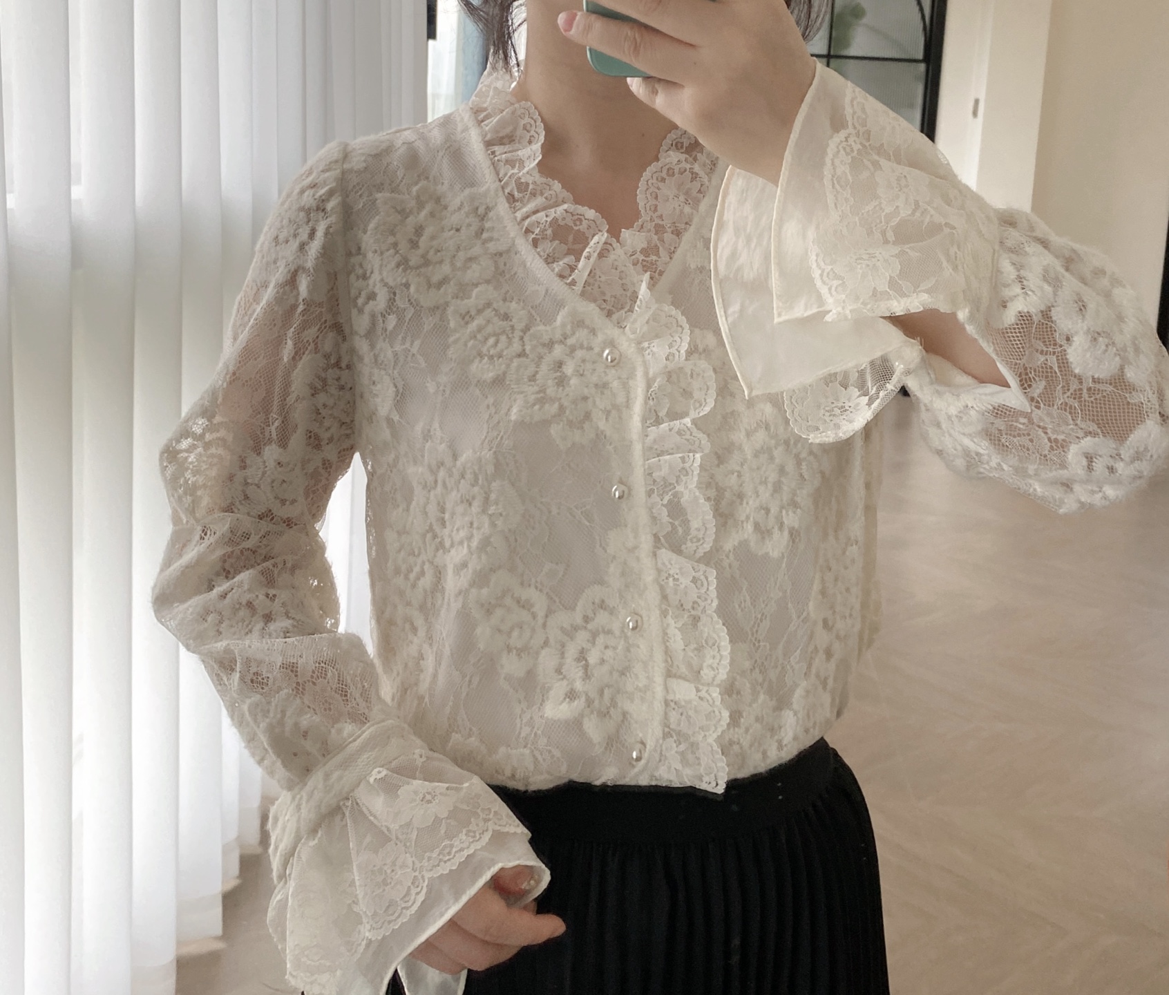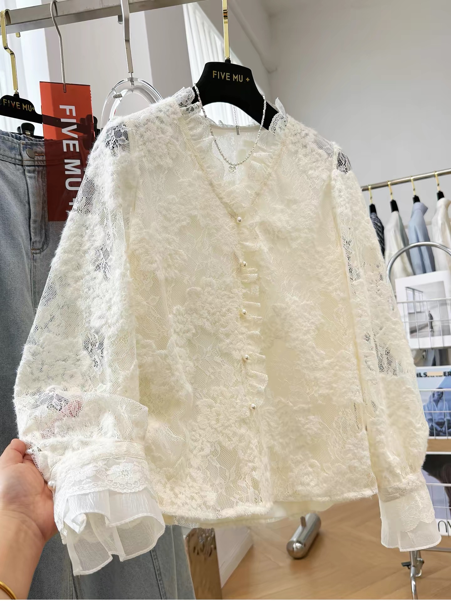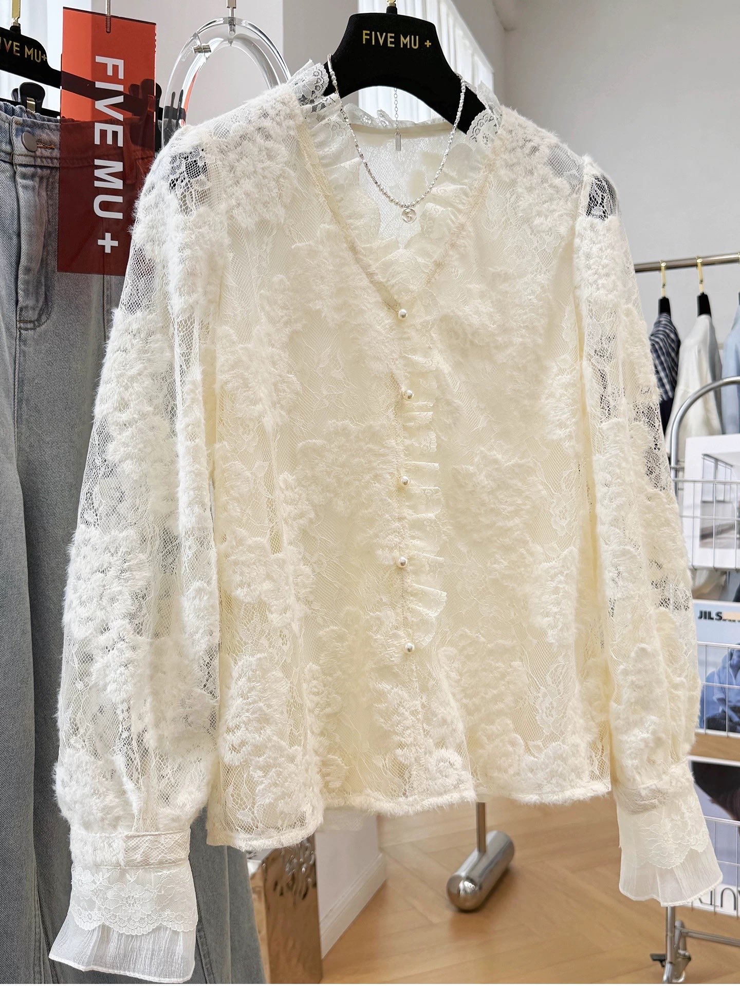 💰139元包邮, 【3350】水溶蕾丝~法式温柔风钩花丝拼接V领衬衫 纯属个人喜欢 很仙气飘飘的一款衬衫! 加入浪漫的法式蕾丝元素, 给简约的版型注入一抹浪漫灵魂
