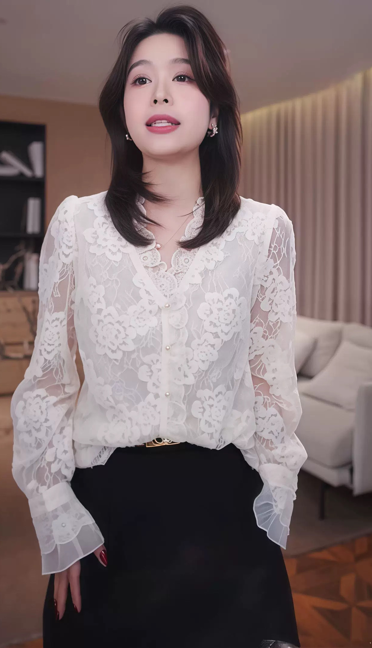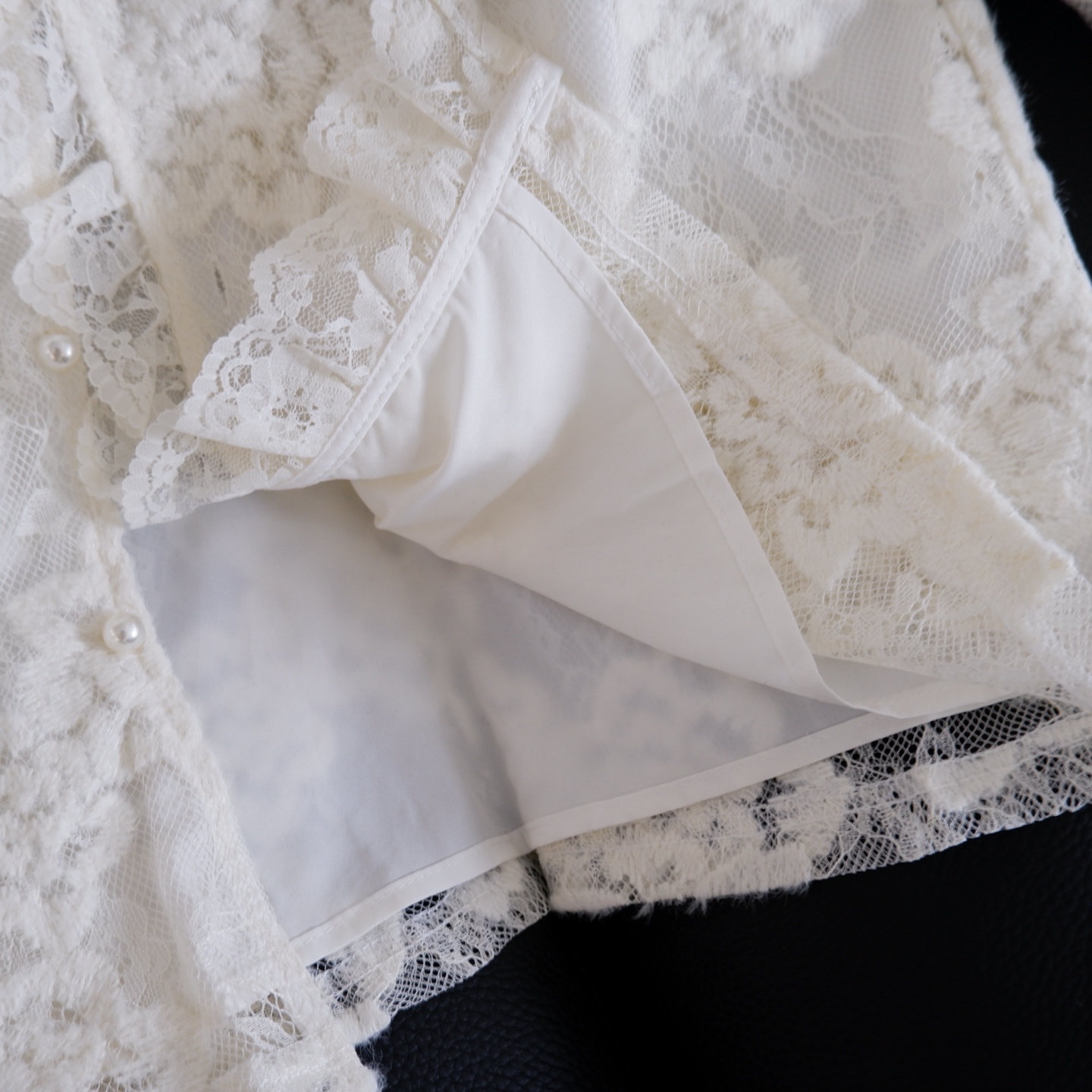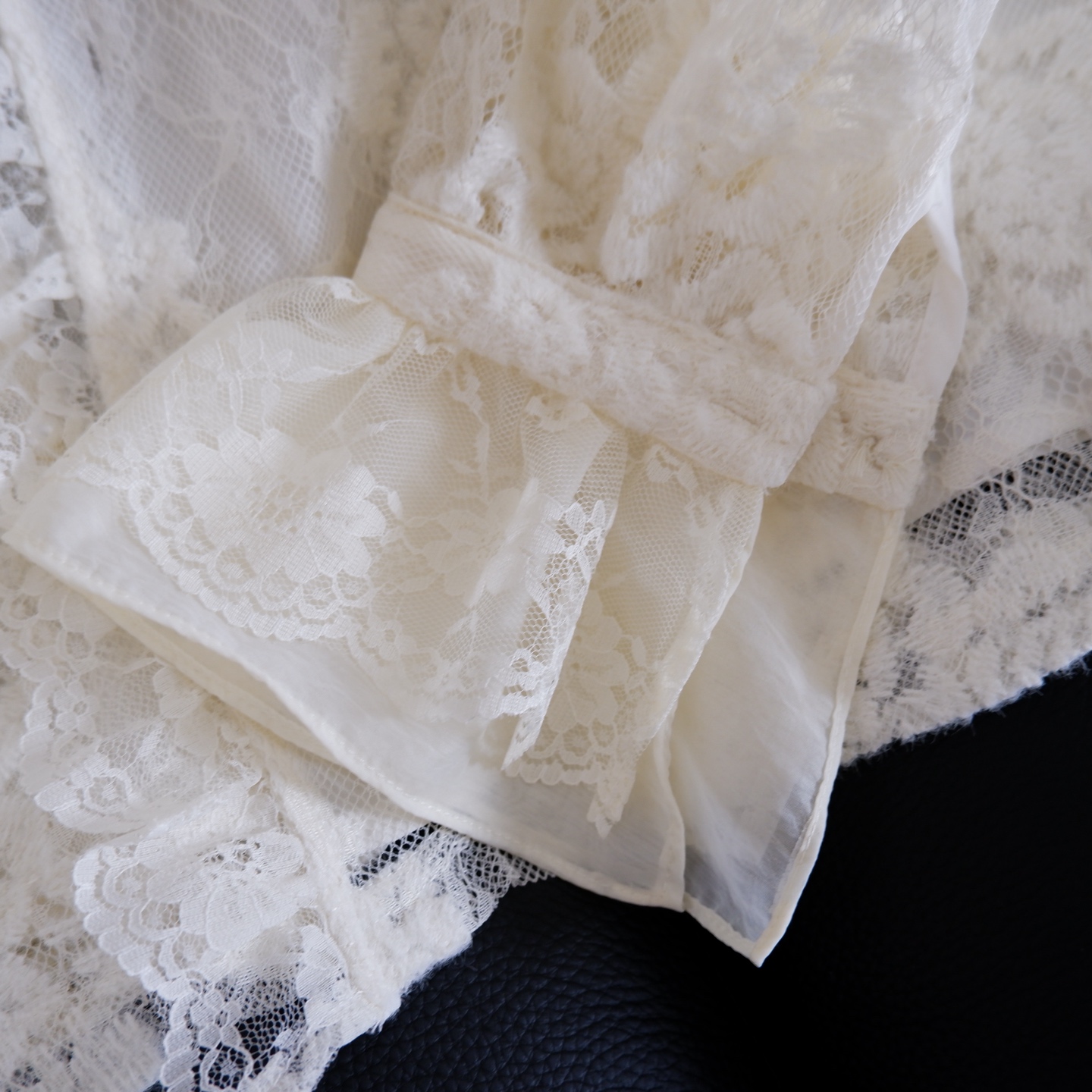 通透蕾丝面料:采用高支数立体蕾丝,花纹层次分明,触感柔软亲肤。