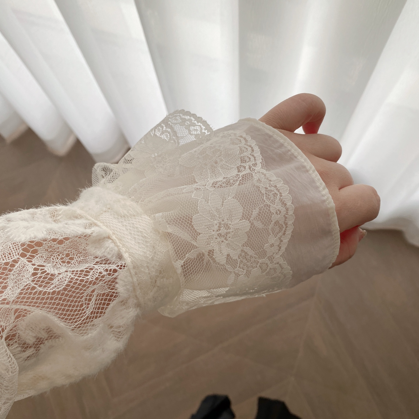 它自带朦胧通透感,隐约露出肌肤,尽显法式优雅的小性感。