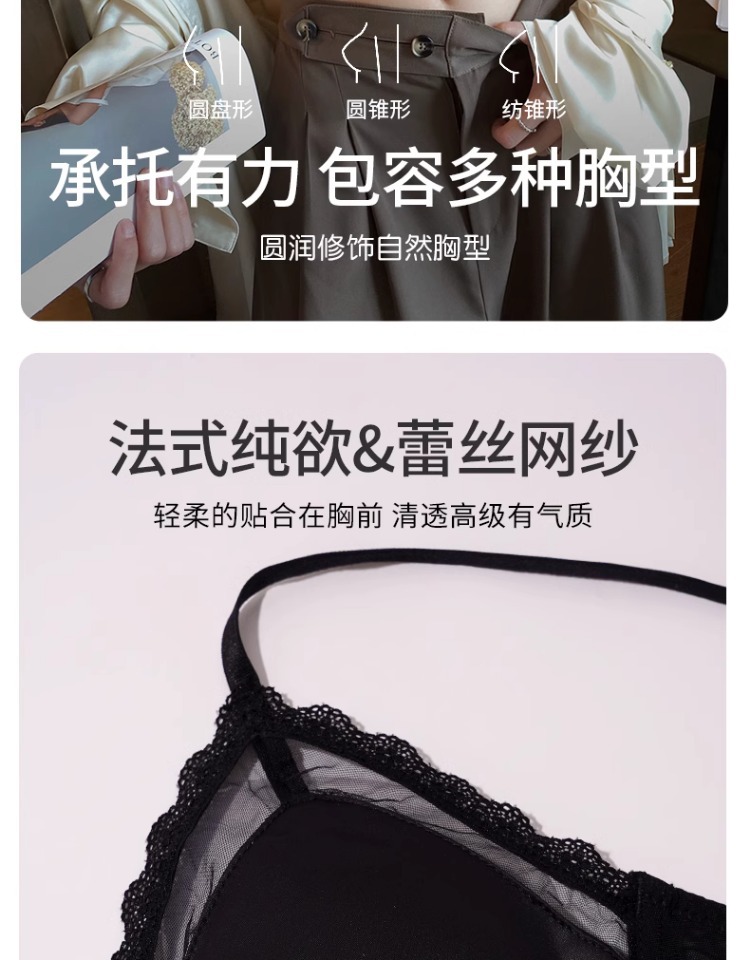 法式小胸内衣女夏季薄款舒适透气无钢圈性感蕾丝三角杯文胸不空杯2025新款爆款小红书女神同款