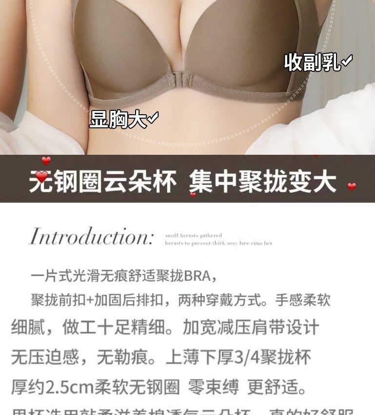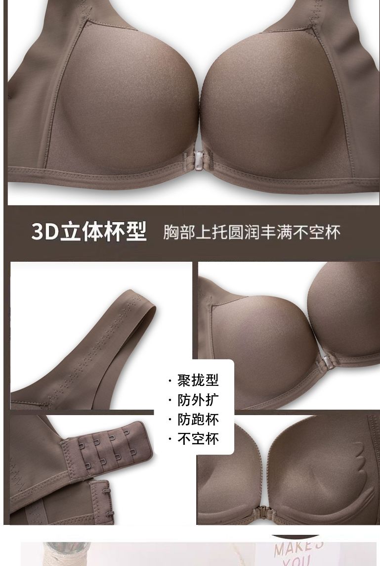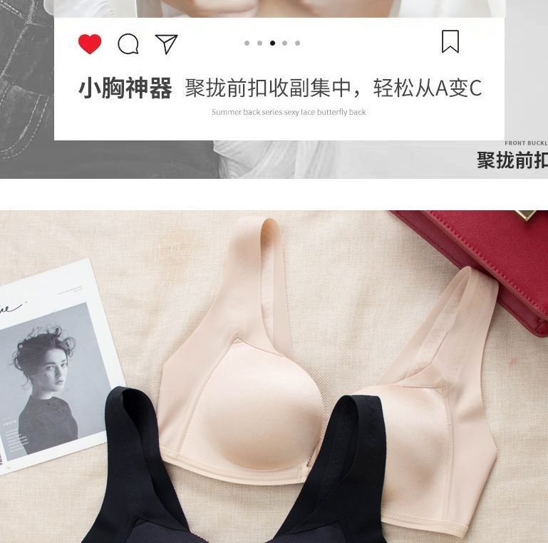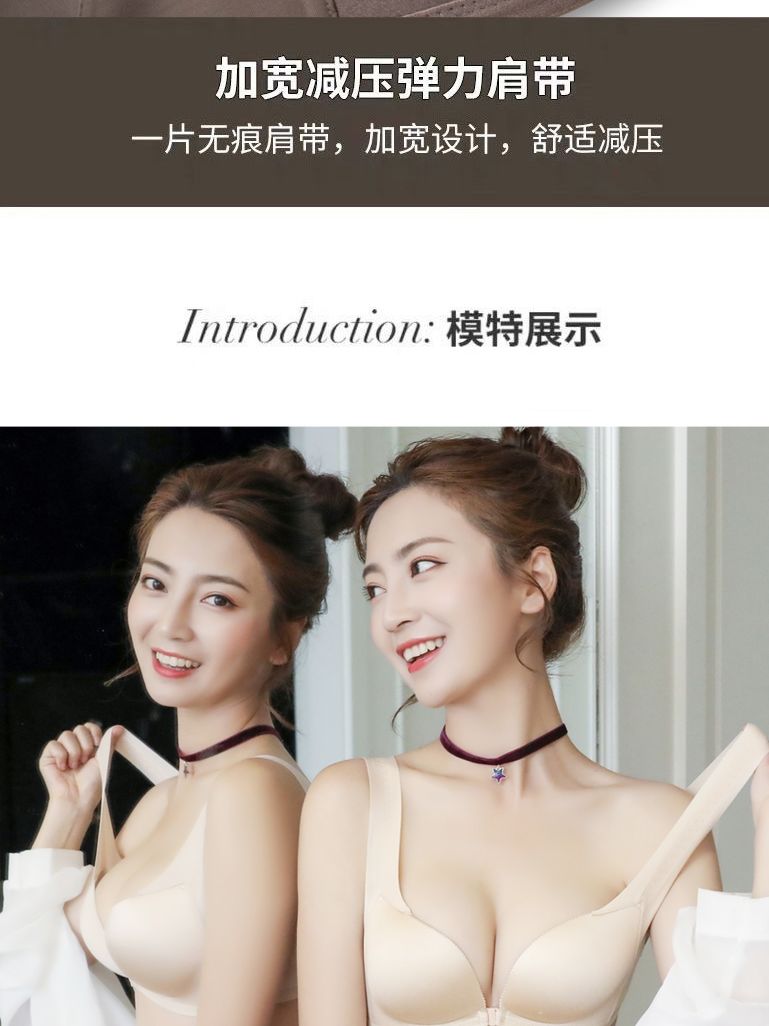 【新款】前扣内衣女聚拢防滑无痕美背文胸无钢圈小胸防下垂收副乳加厚胸罩