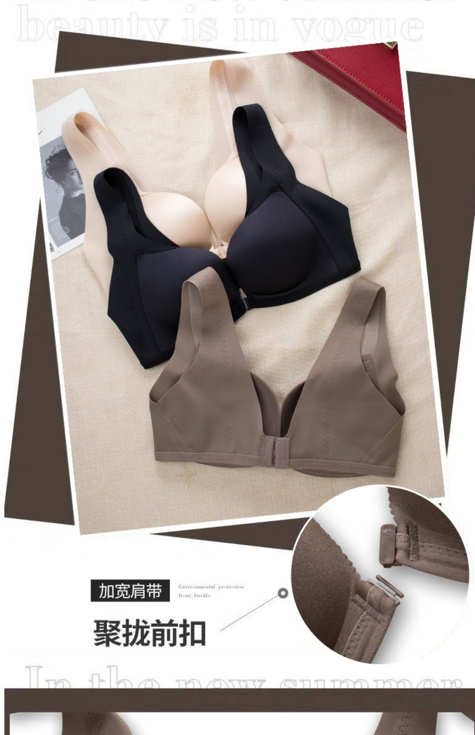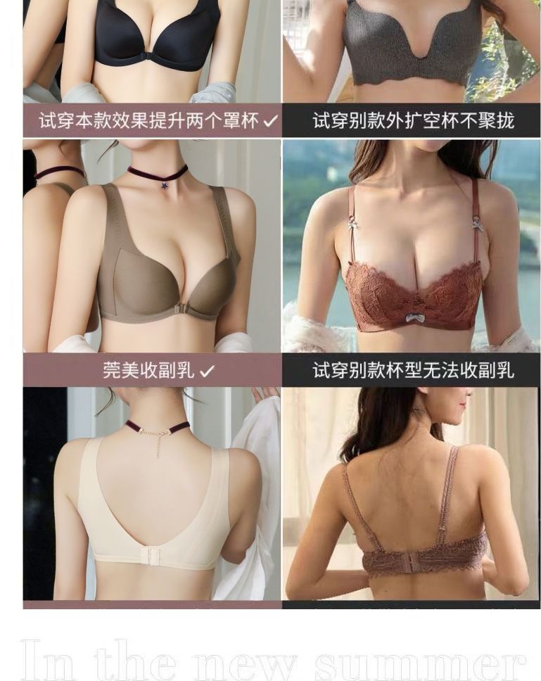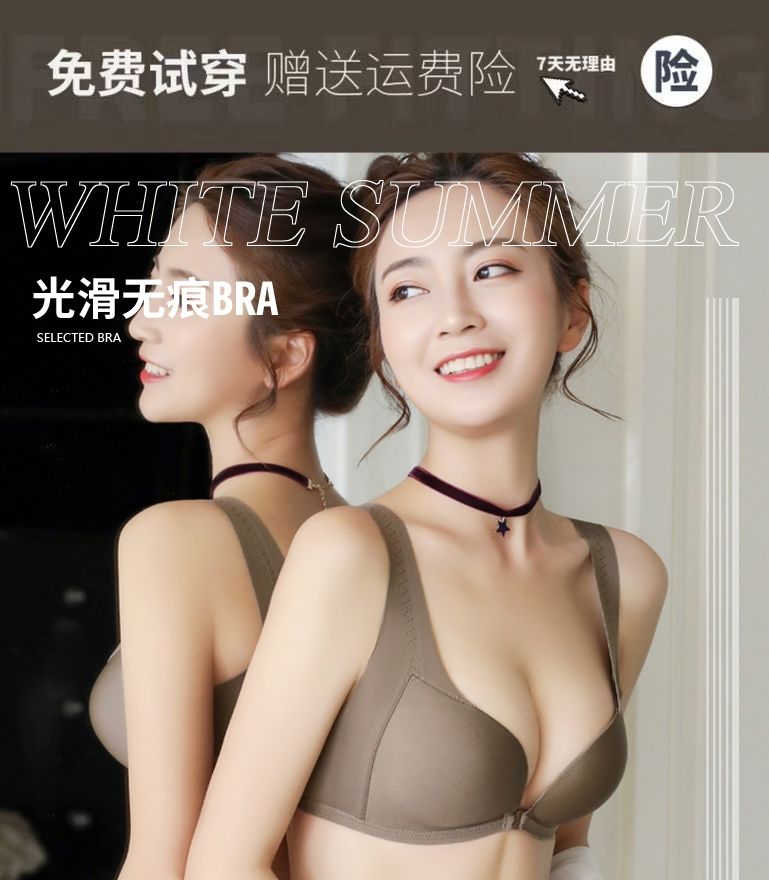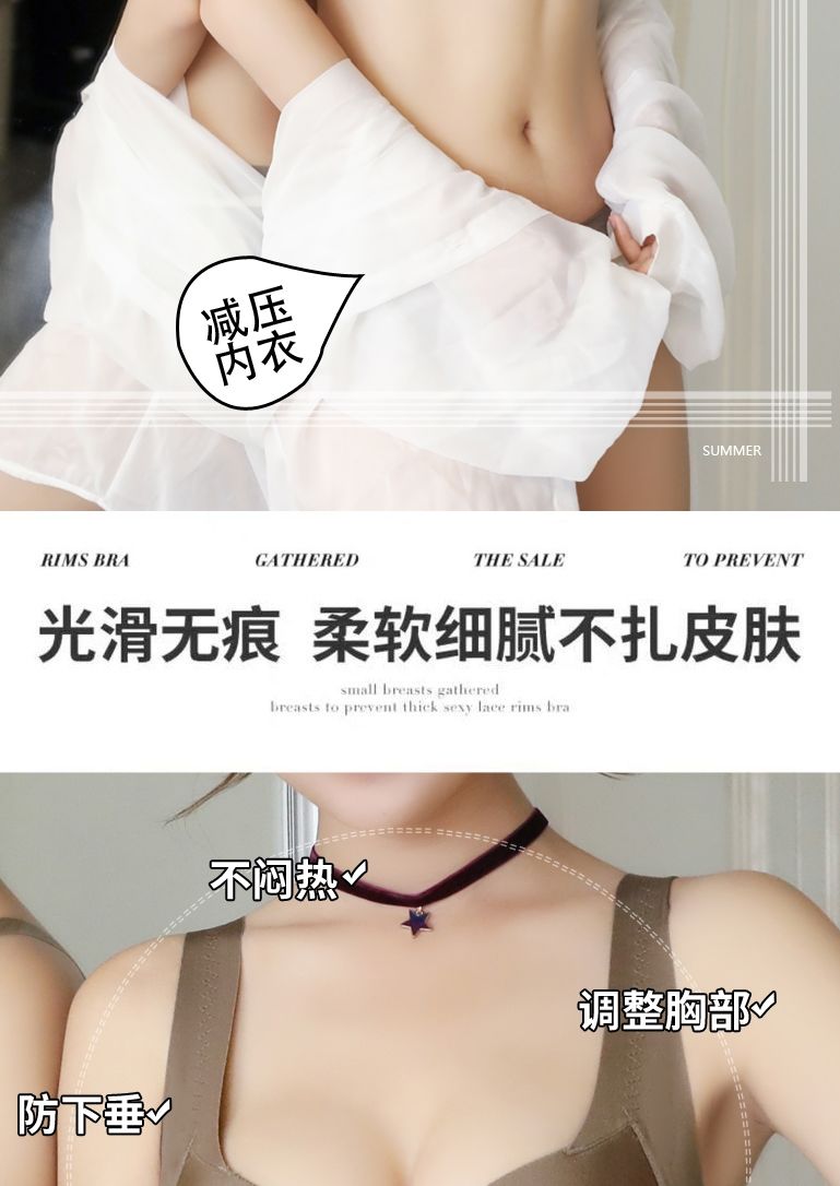 【新款】前扣内衣女聚拢防滑无痕美背文胸无钢圈小胸防下垂收副乳加厚胸罩
