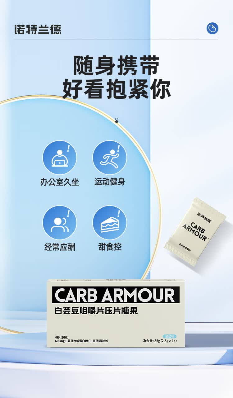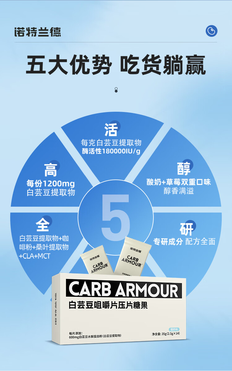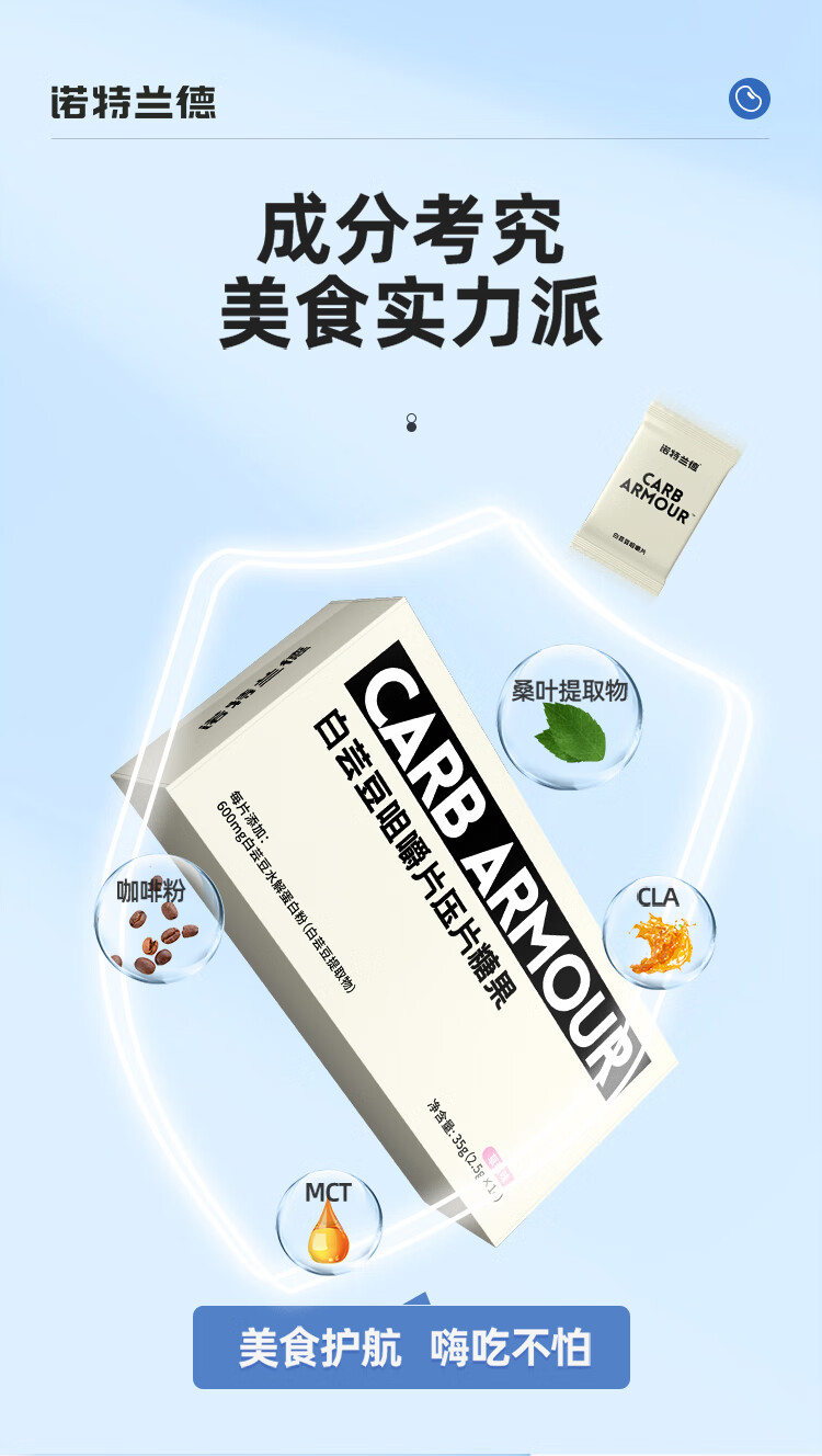 诺特兰德 CARB ARMOUR白芸豆咀嚼片压片糖果(草莓味)35g/盒