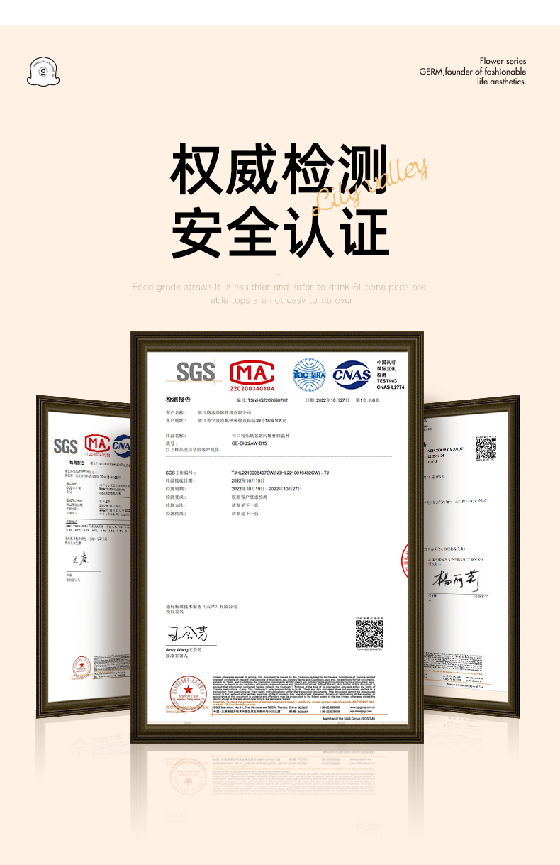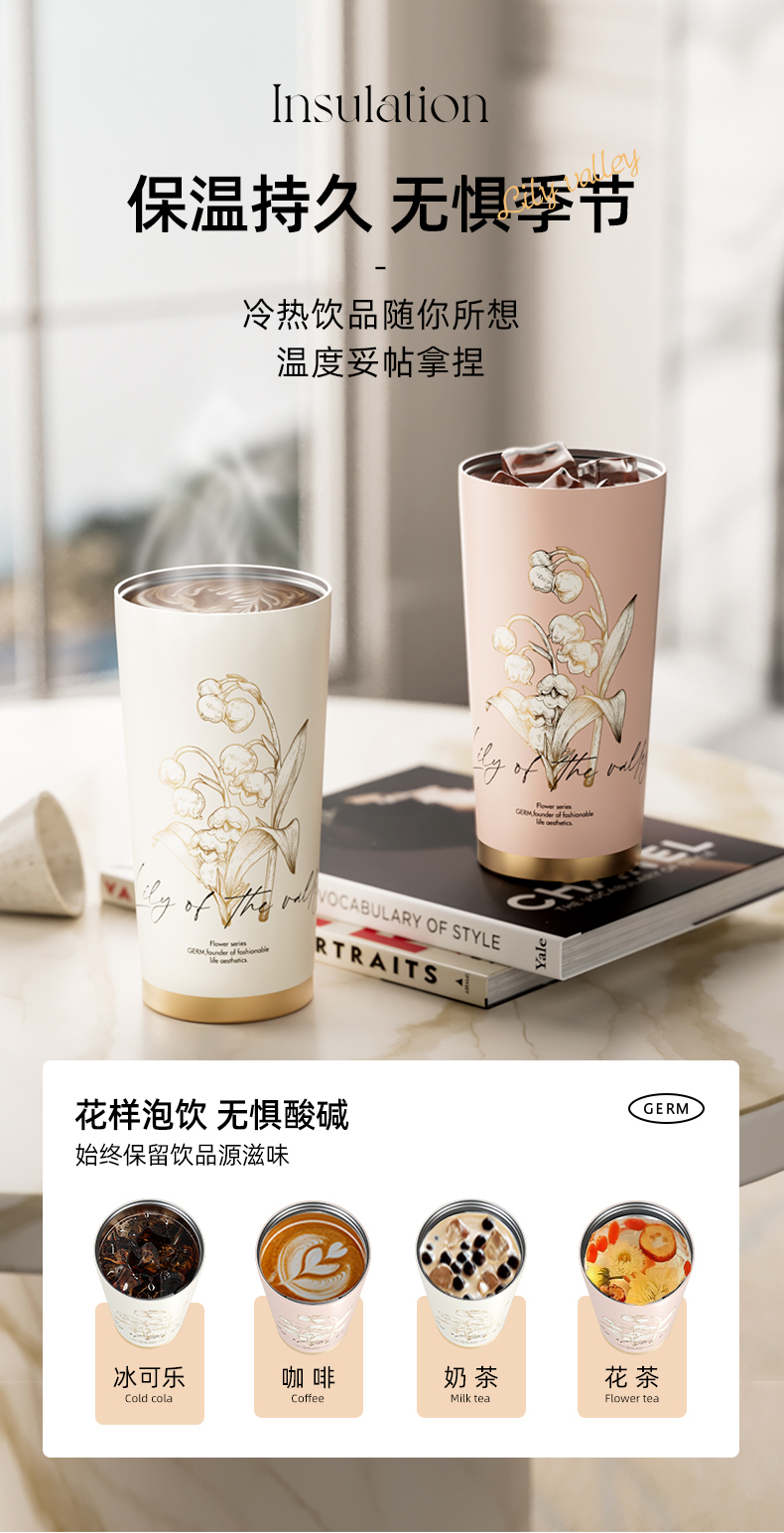 【自营】 格沵GERM 铃兰系列闪耀保温杯 316不锈钢 500ml 雾粉/茶白