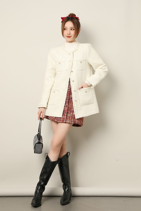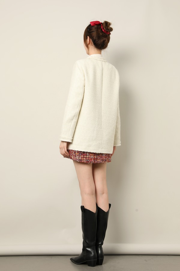 Le Malene 白色小香风夹棉粗花呢圆领西装外套 17655