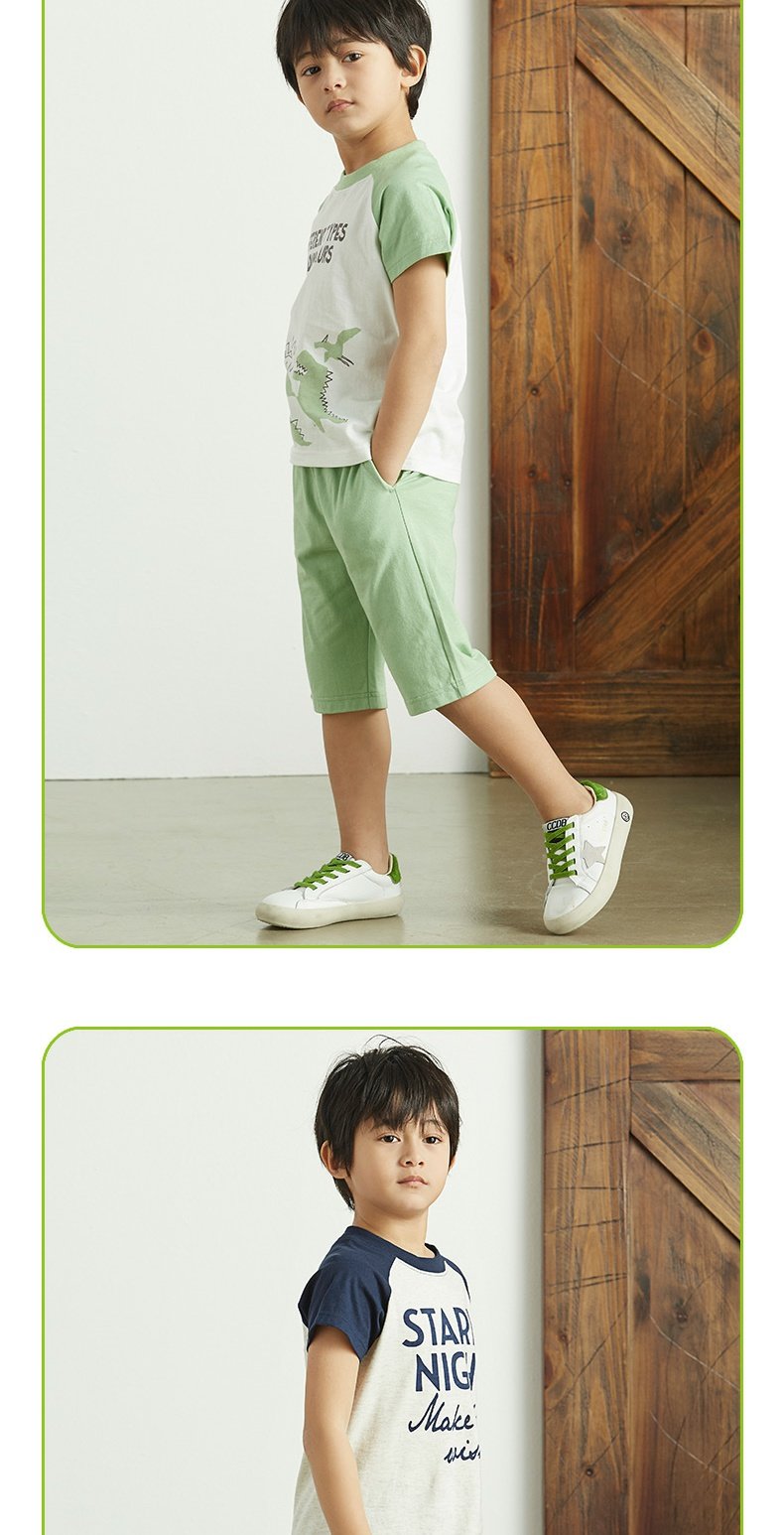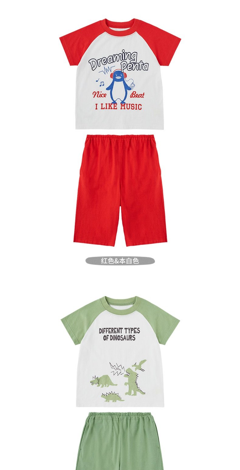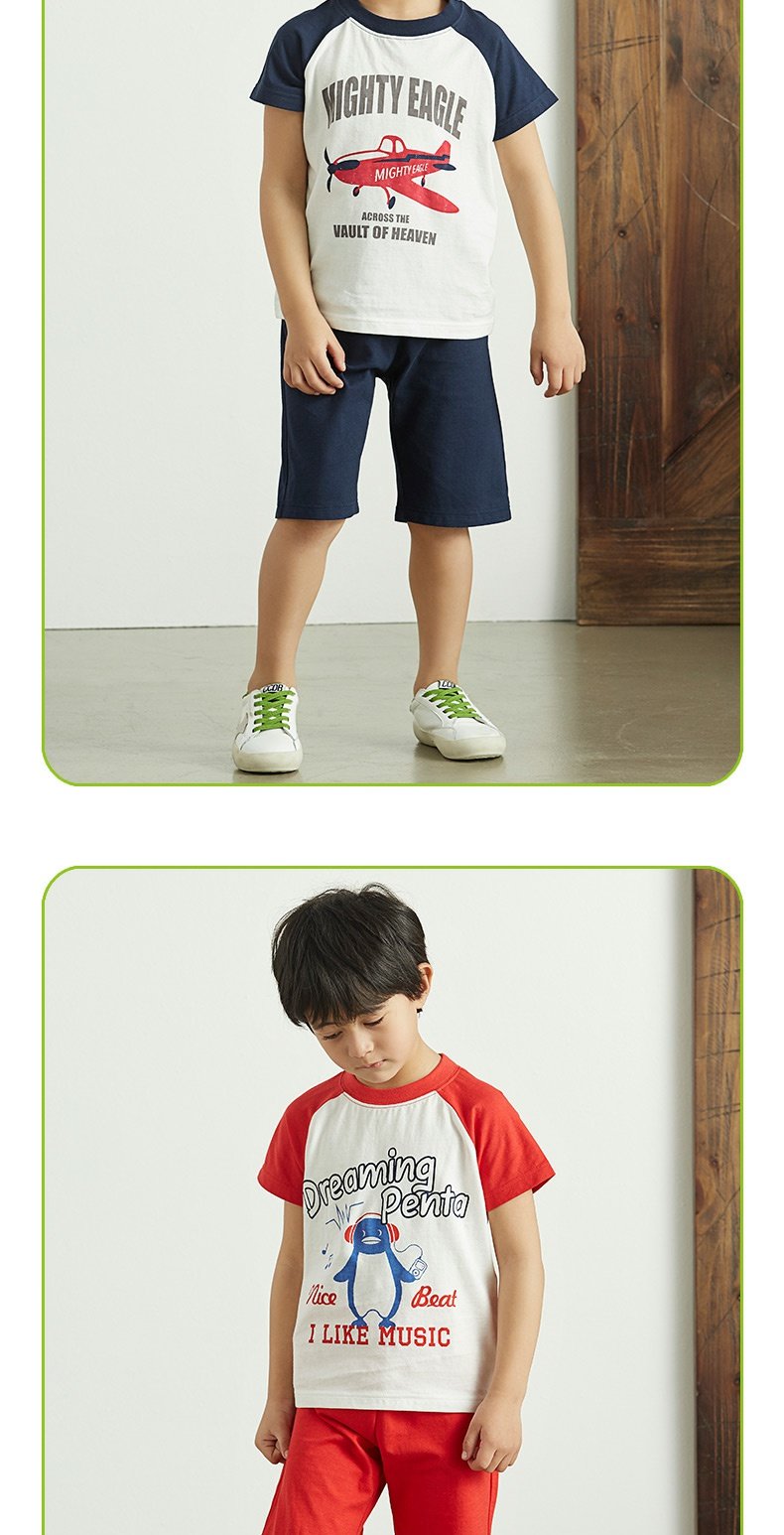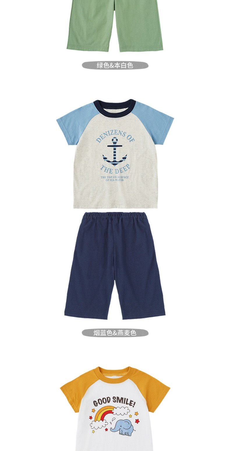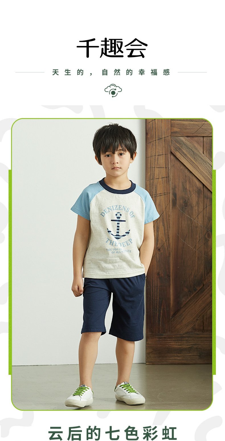 千趣会春夏季童装空调服外出服薄款圆领纯棉男童短袖短裤套装