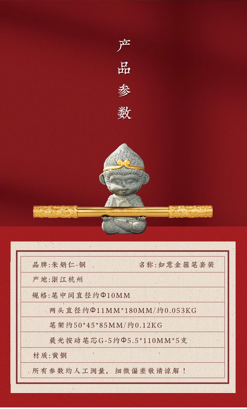 【限时团购】朱炳仁·铜 如意金箍棒笔套装 铜金箍棒石猴摆件