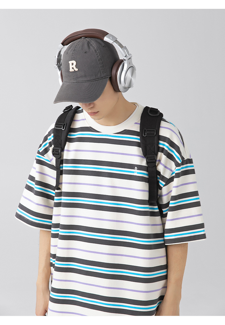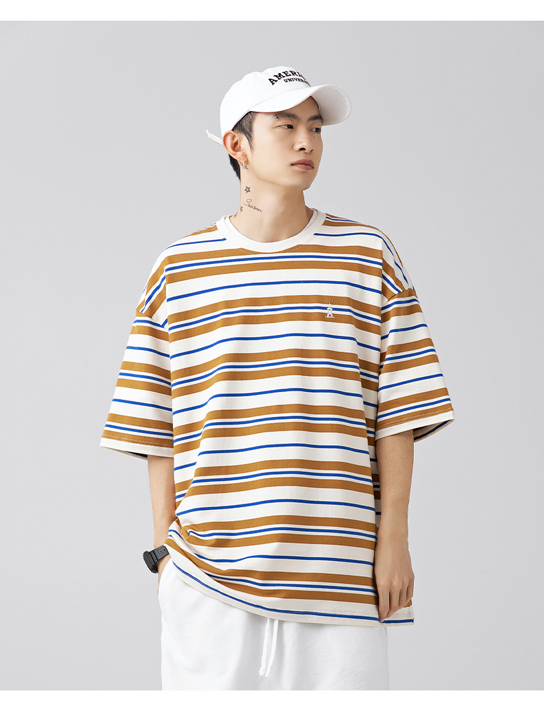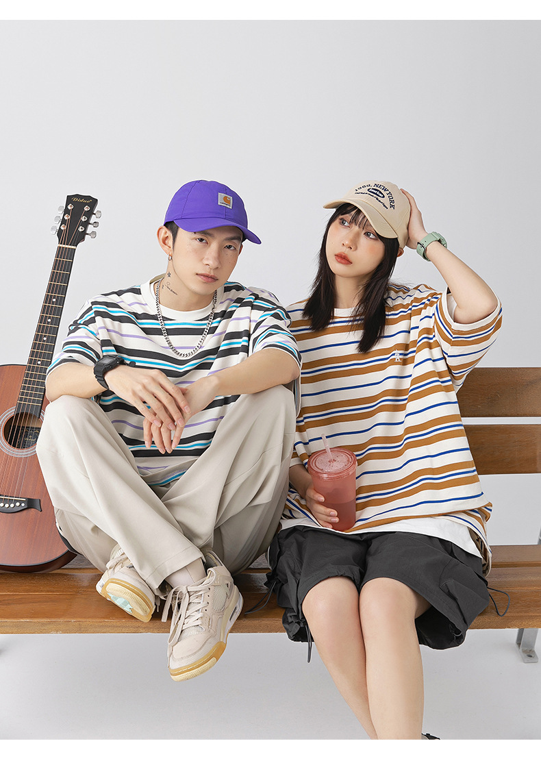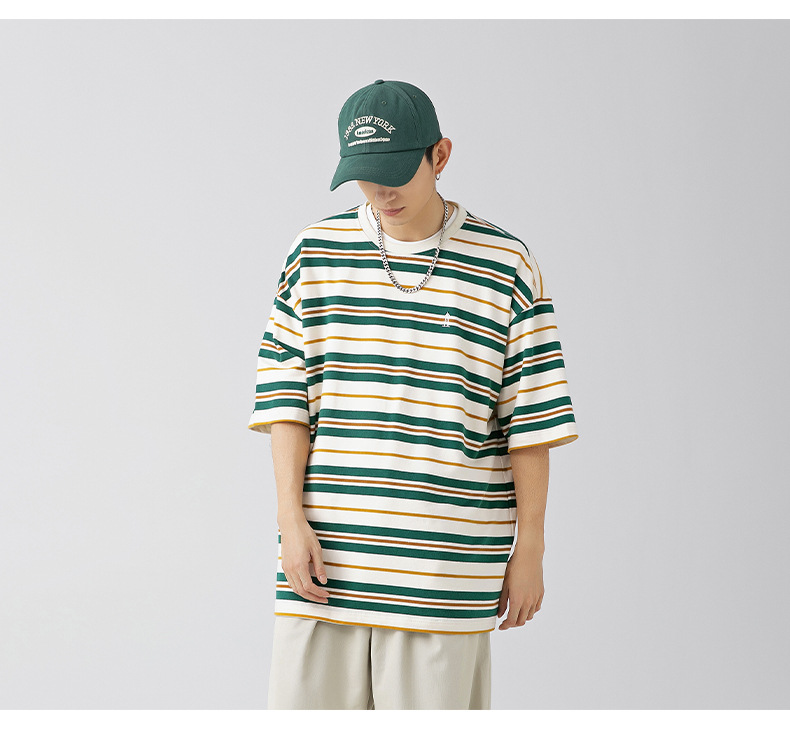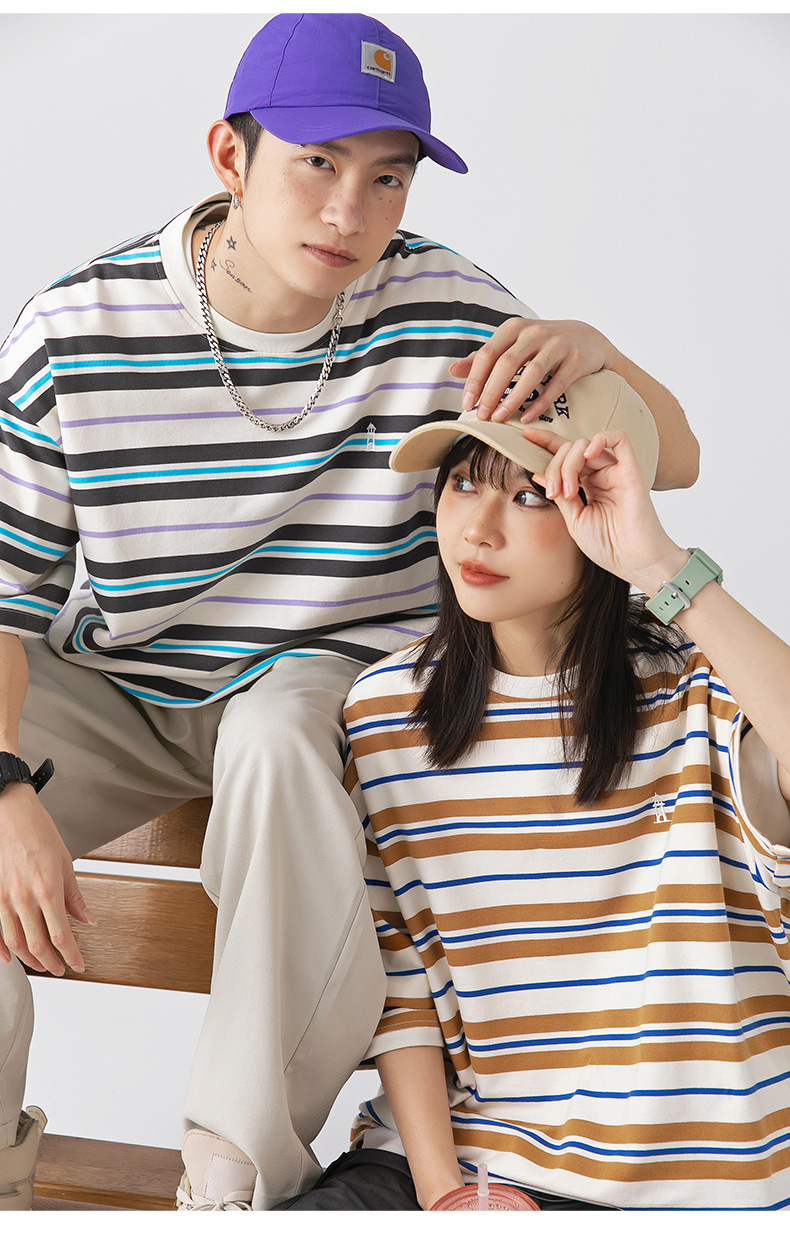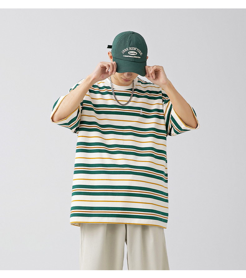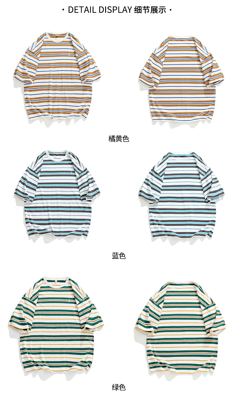 「三款配色」韩路日系男装 潮牌复古撞色条纹T恤男 春夏新款宽松情侣款短袖上衣