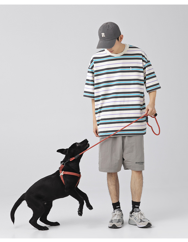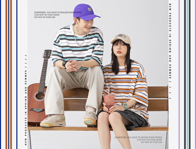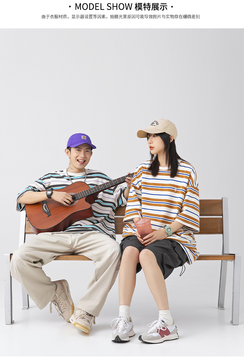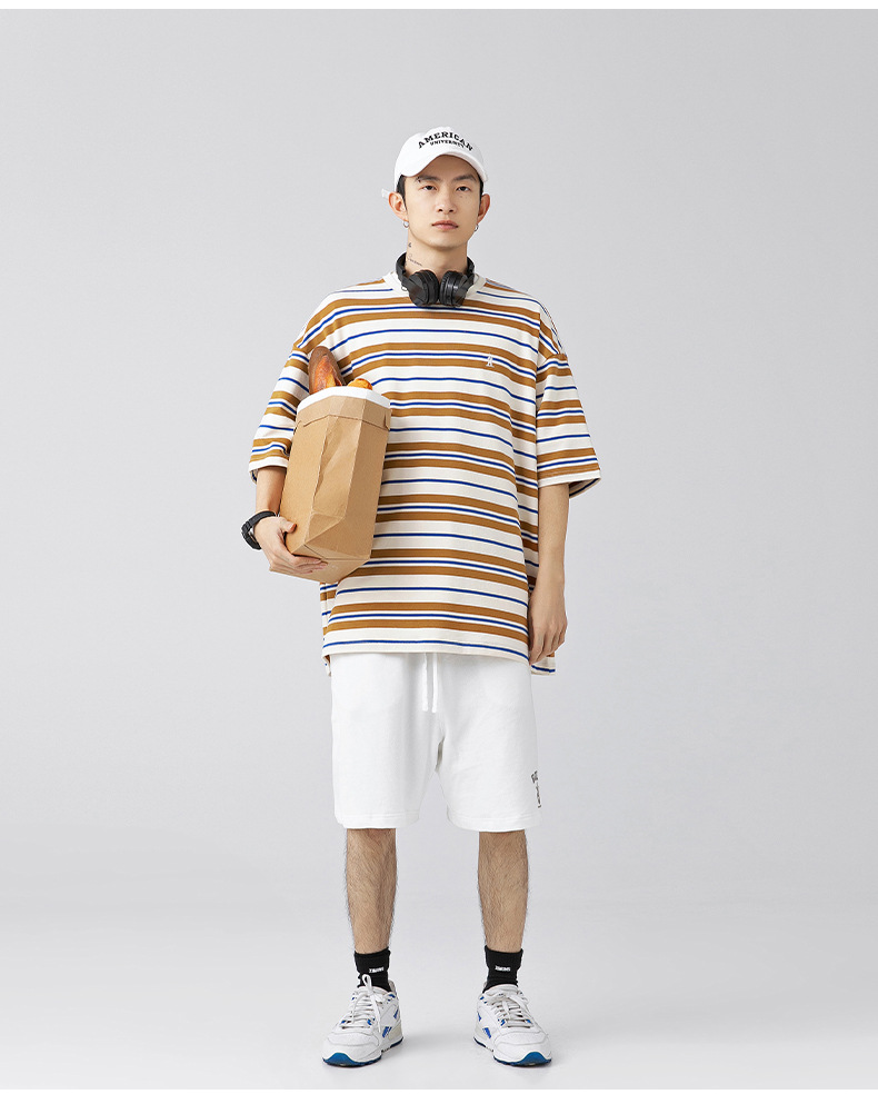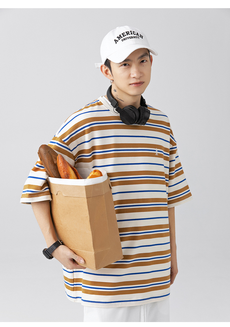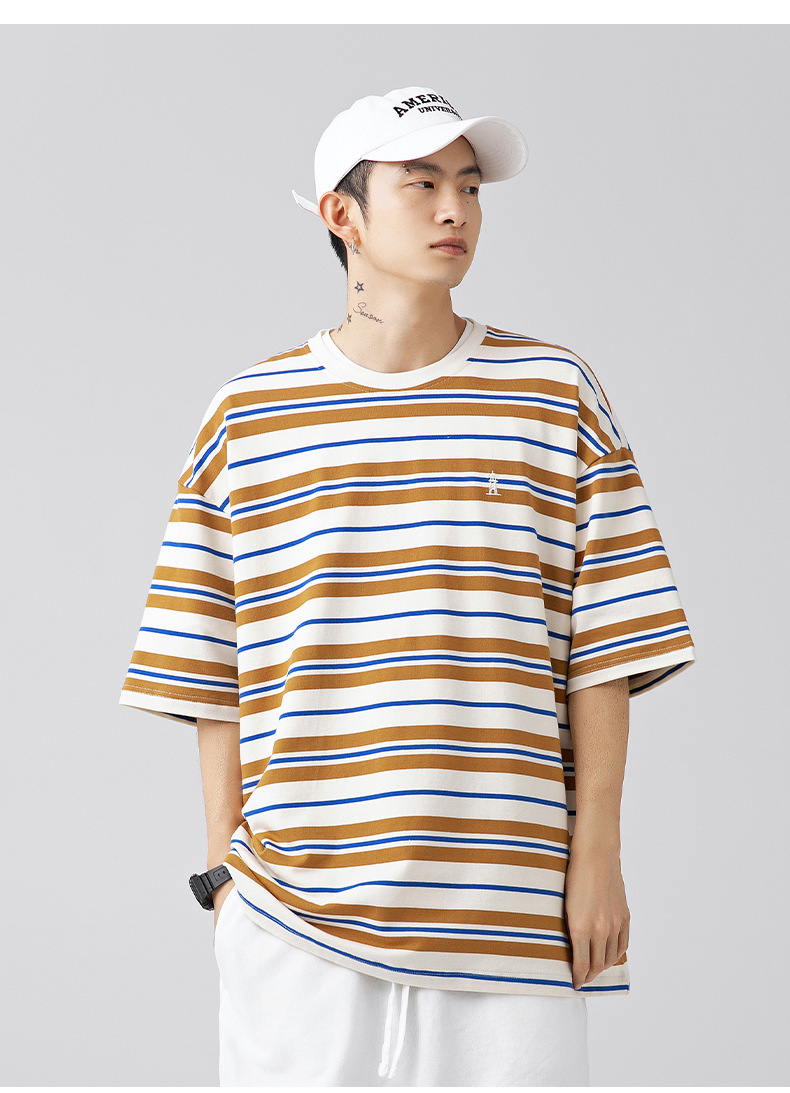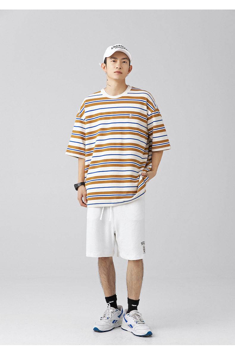 「三款配色」韩路日系男装 潮牌复古撞色条纹T恤男 春夏新款宽松情侣款短袖上衣