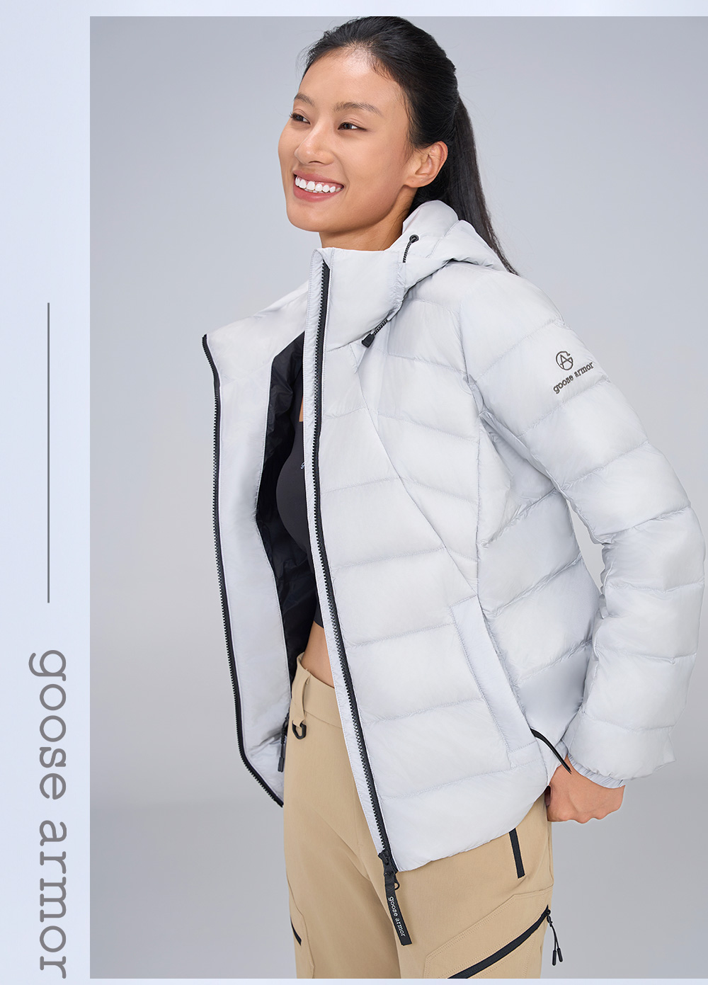 天石鹅铠甲秋冬鹅绒羽绒服女款收腰显瘦短款百搭连帽保暖G338