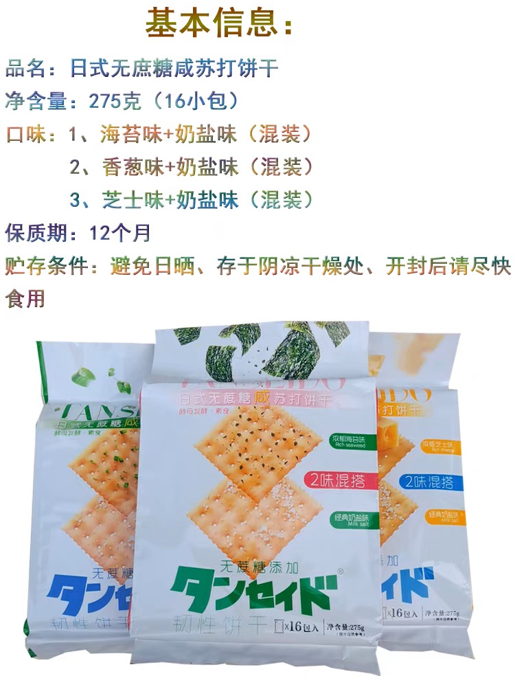 TANSEIDO-日式无蔗糖苏打饼干275g(海苔味+奶盐味)