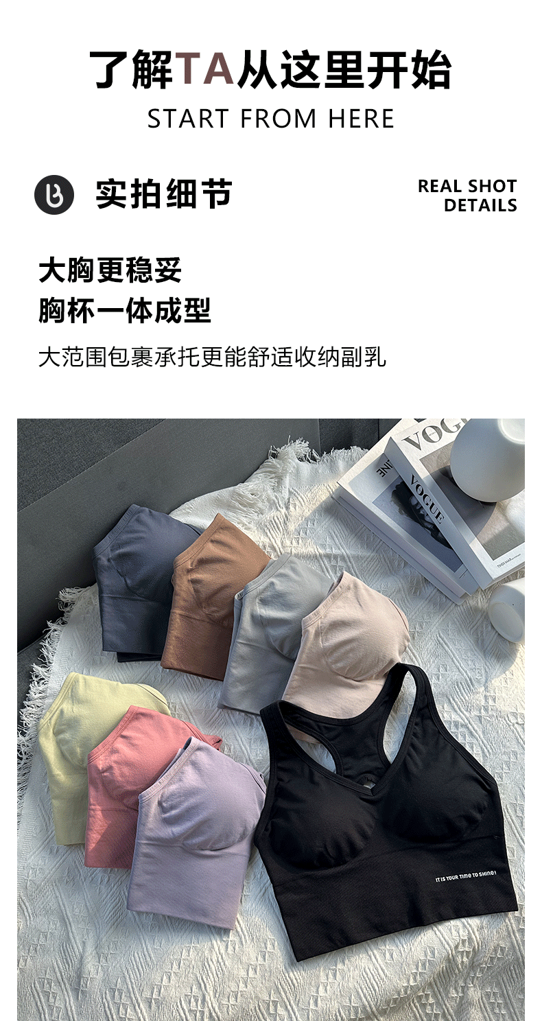 beemen一体杯防震内衣 聚拢包裹 四排搭扣 稳固承托 无缝一体织舒适不勒 外穿内搭运动背心