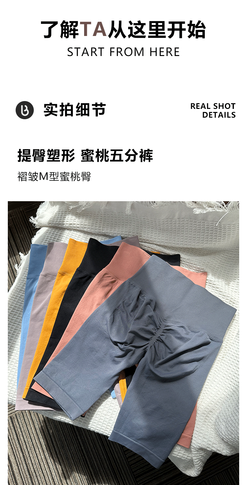 beemen蜜桃臀五分裤 收腰提臀 无缝一体织 舒适不勒 瑜伽健身蜜桃臀裤