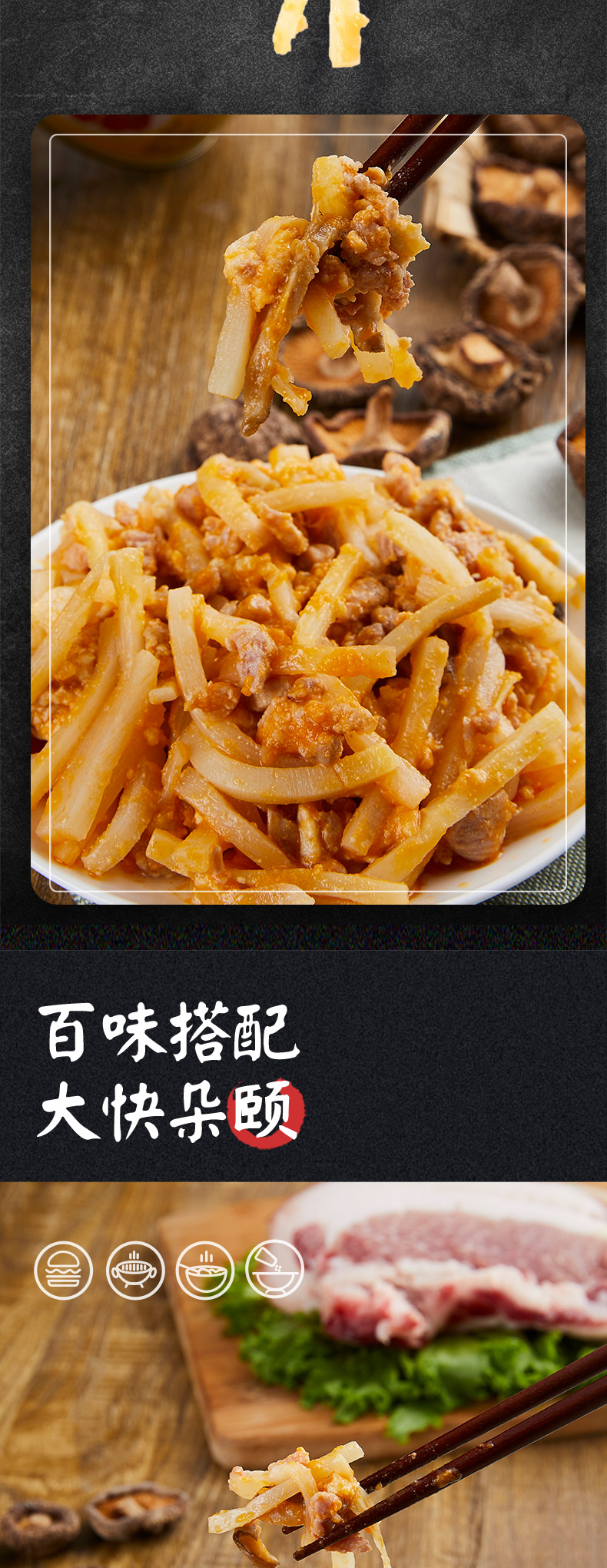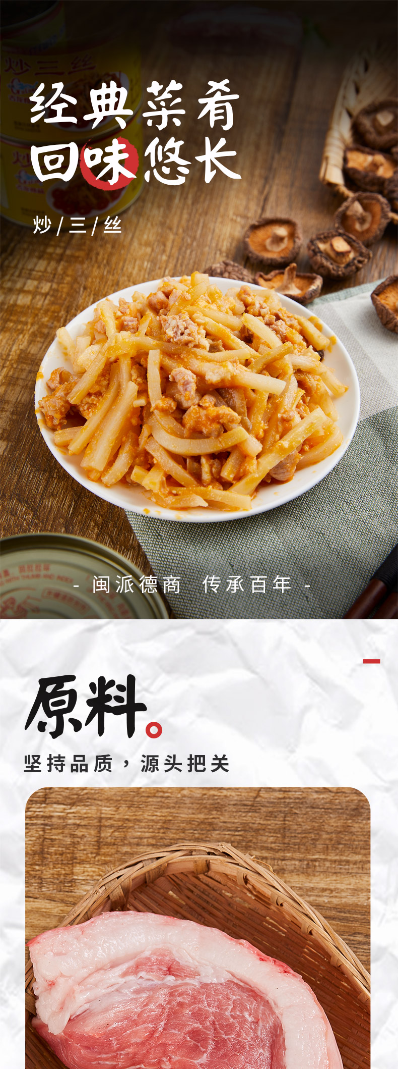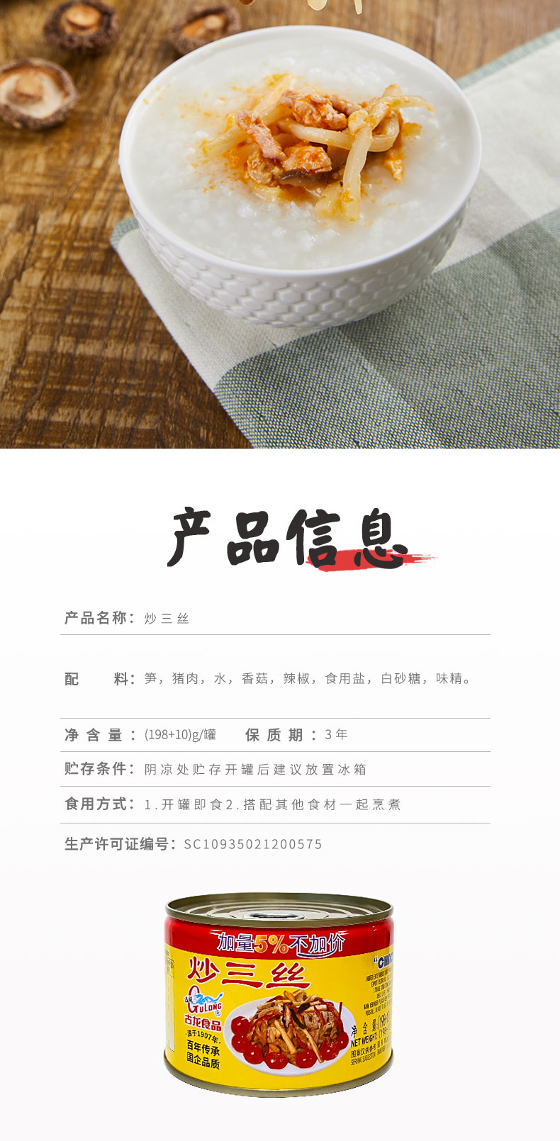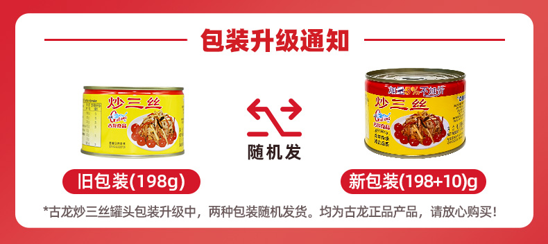 古龙食品炒三丝罐头熟食凉菜即食猪肉笋小吃特产下饭小菜198g*6