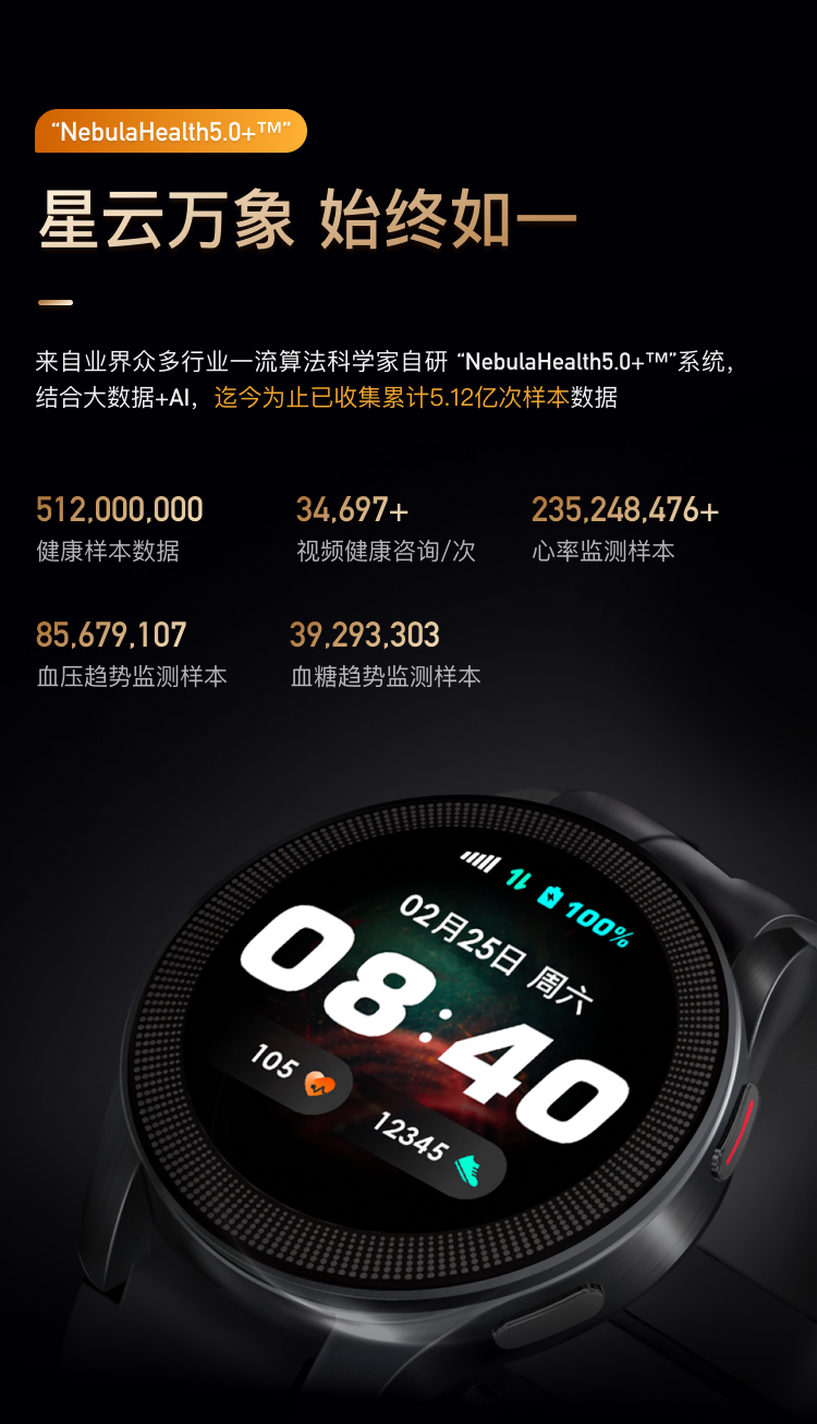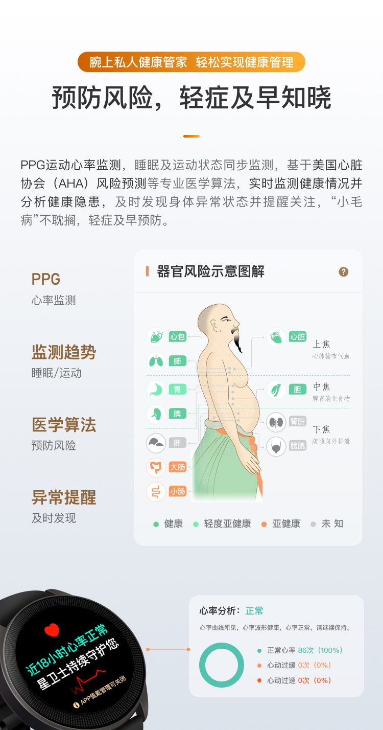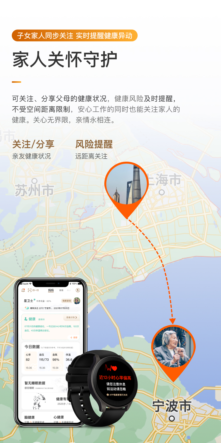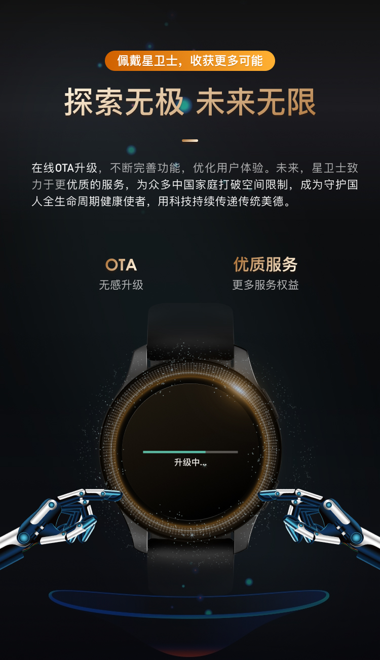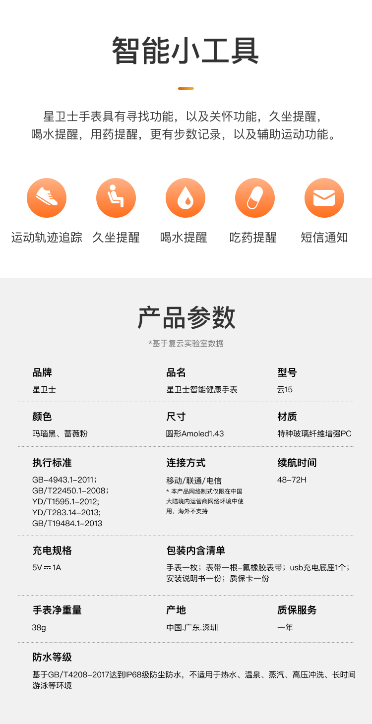 星卫士云15时尚版专业健康智能手表 运动血氧血压心率体温监测提醒 一键SOS求助GPS定位医疗咨询中医诊断华为小米苹果通用主动亚健康预警黑色