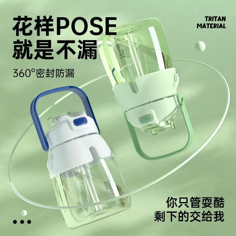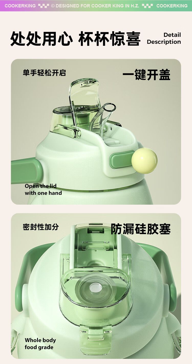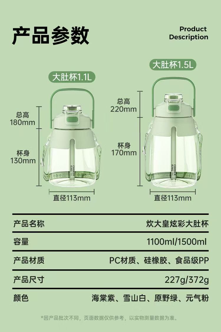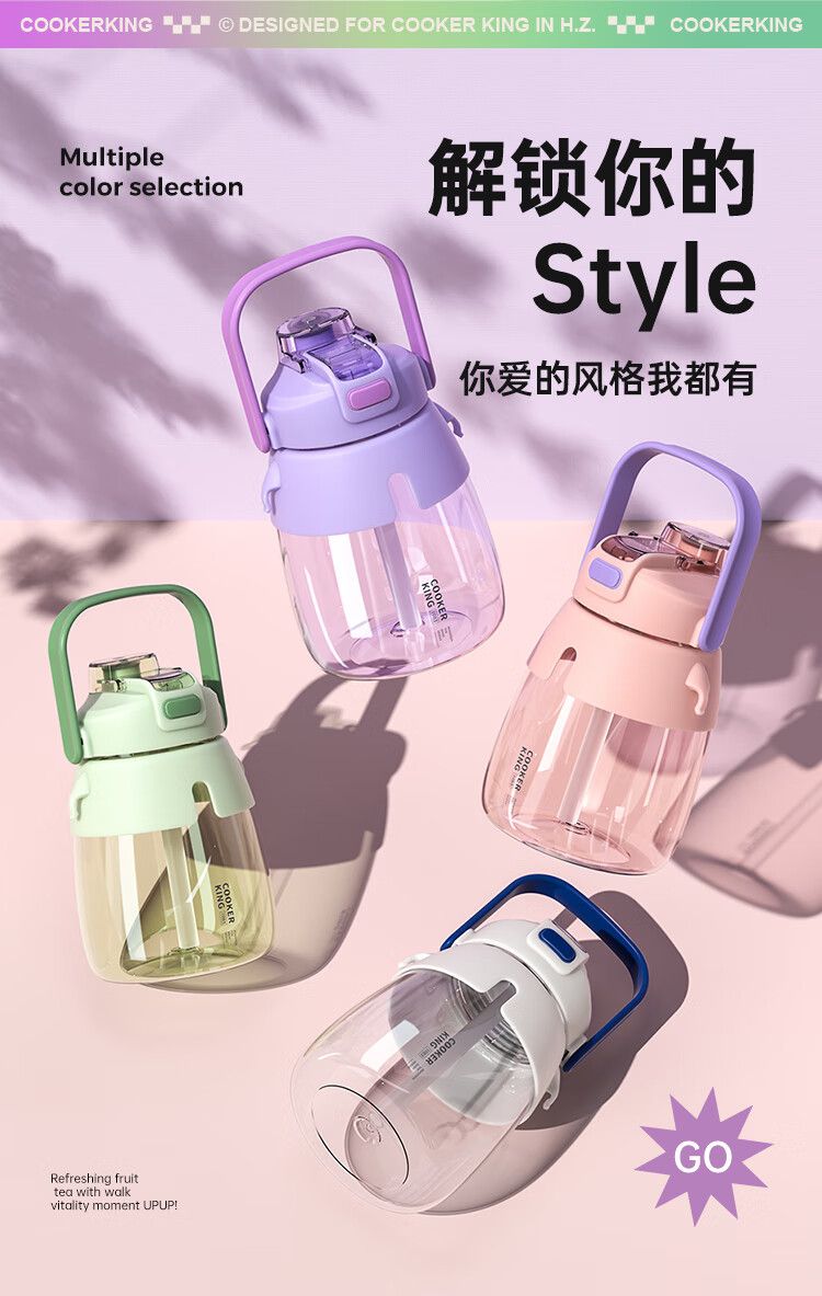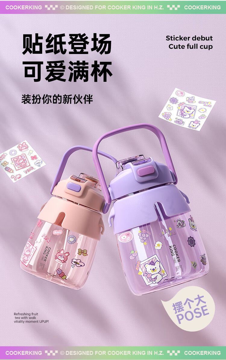 炊大皇大容量水杯女高颜值运动水壶耐高温吸管杯子夏季塑料大肚杯 炫彩大肚杯