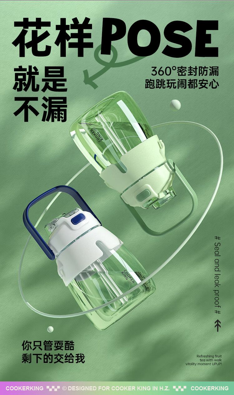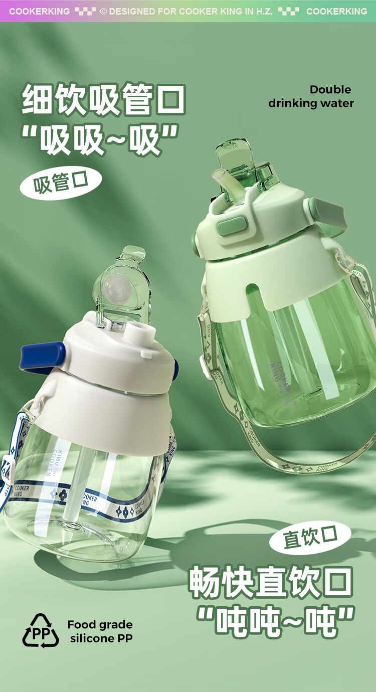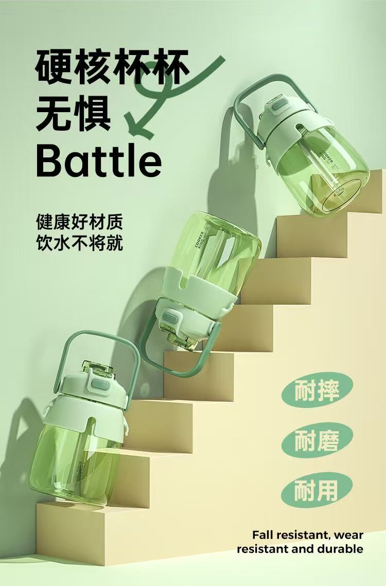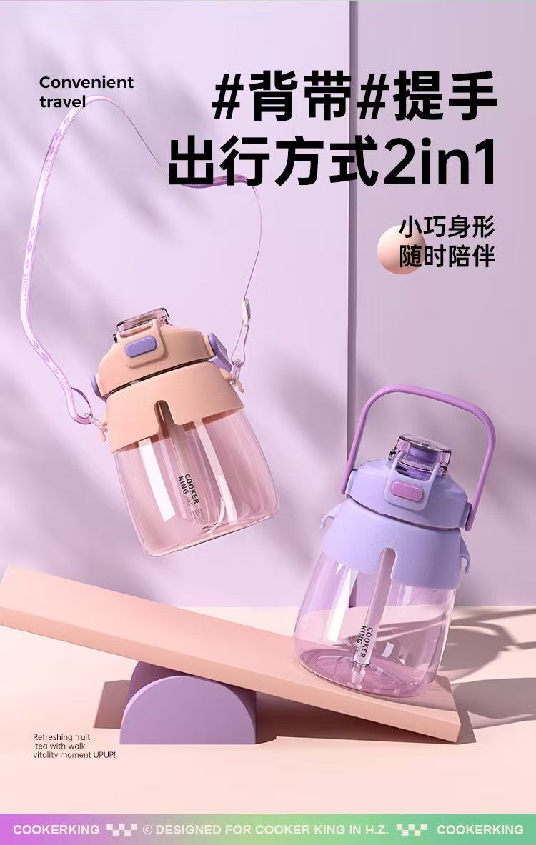 炊大皇大容量水杯女高颜值运动水壶耐高温吸管杯子夏季塑料大肚杯 炫彩大肚杯