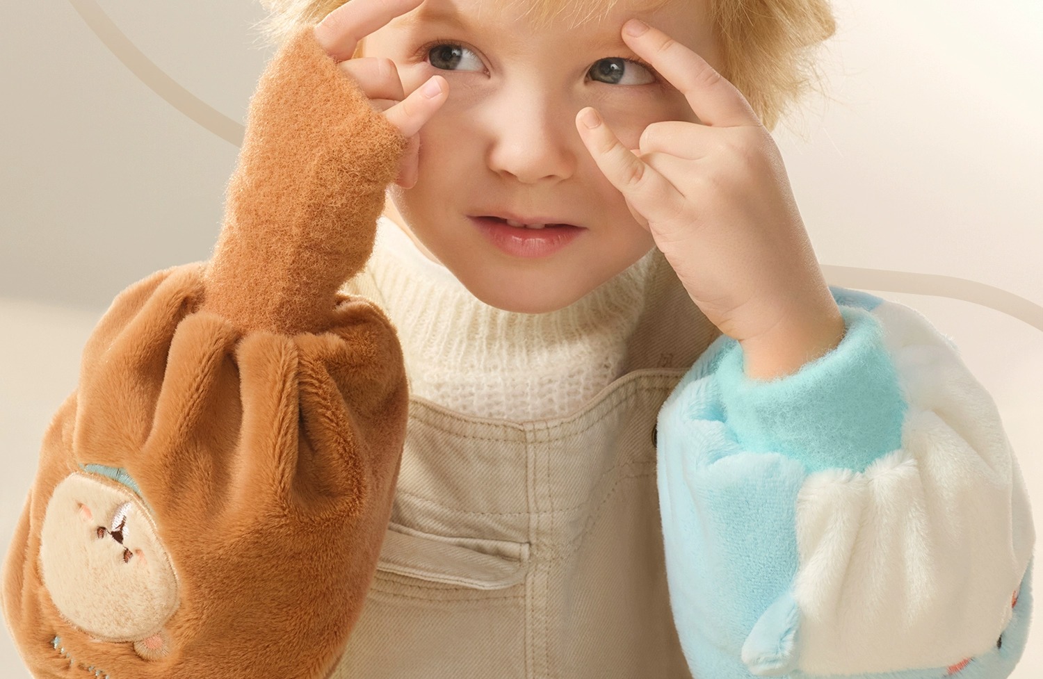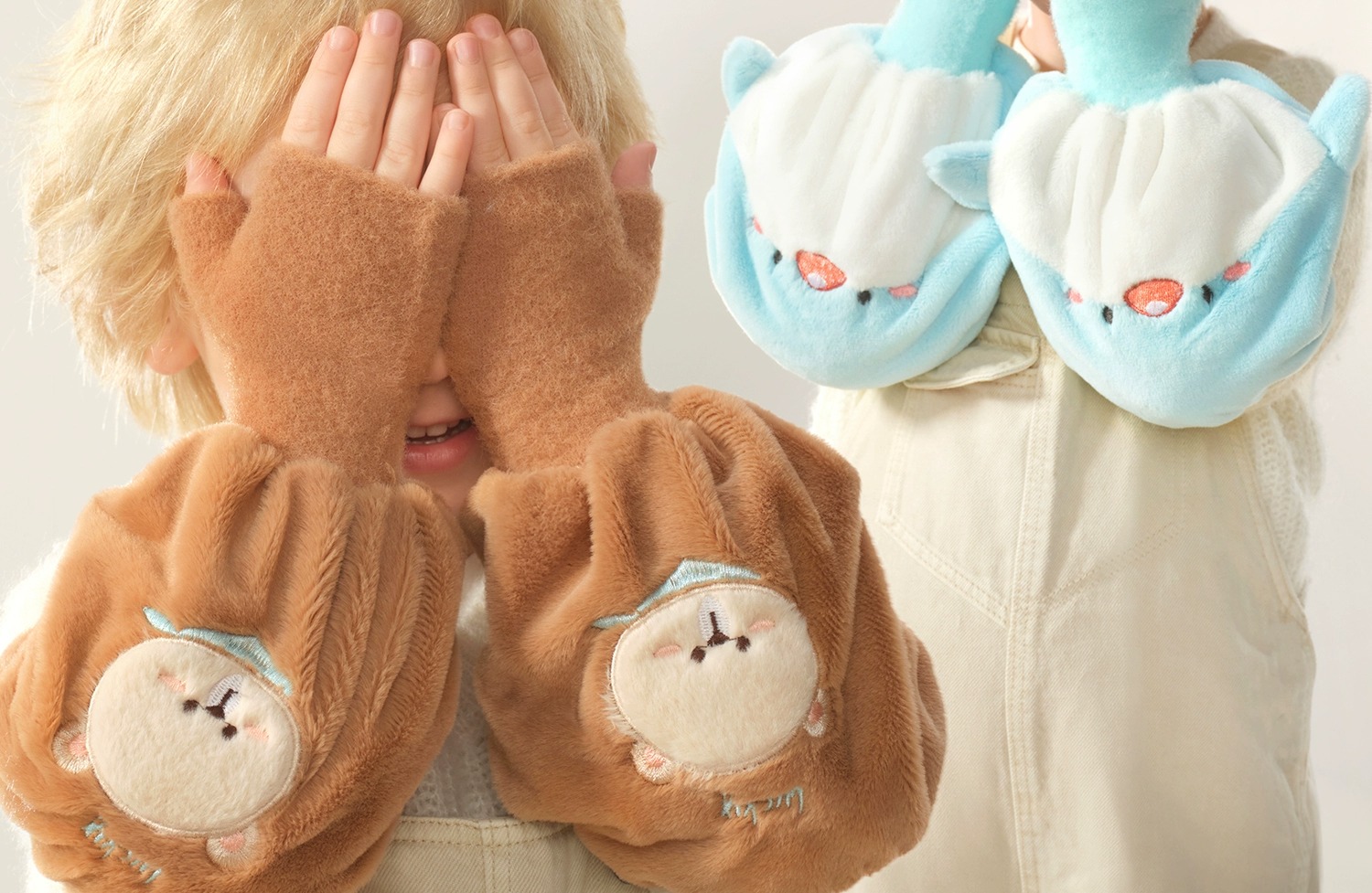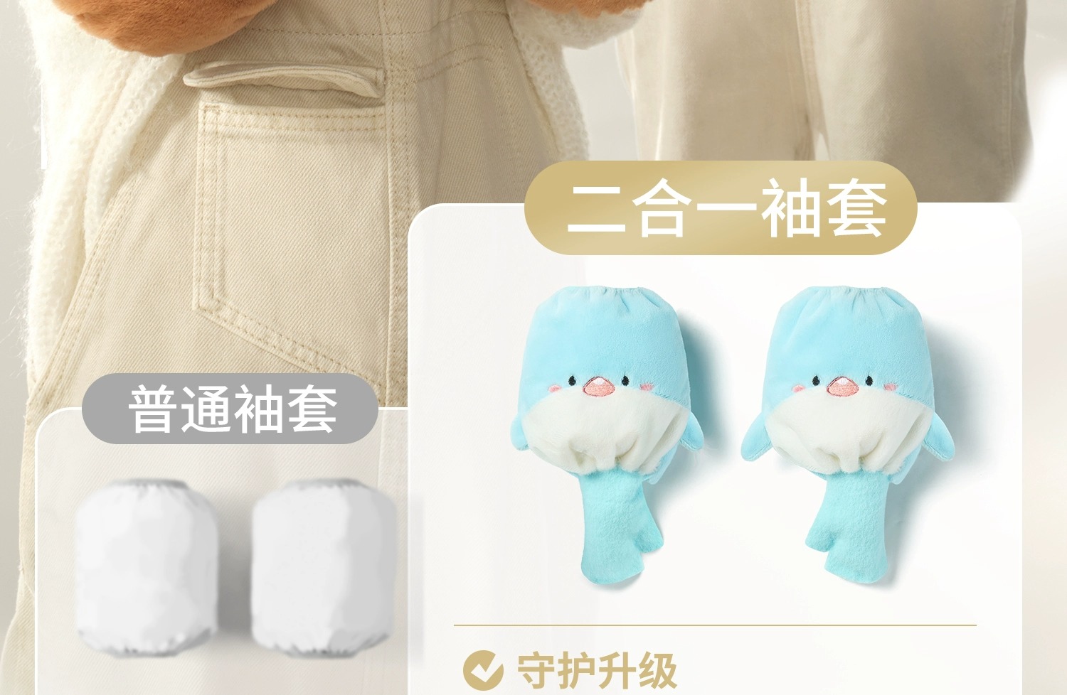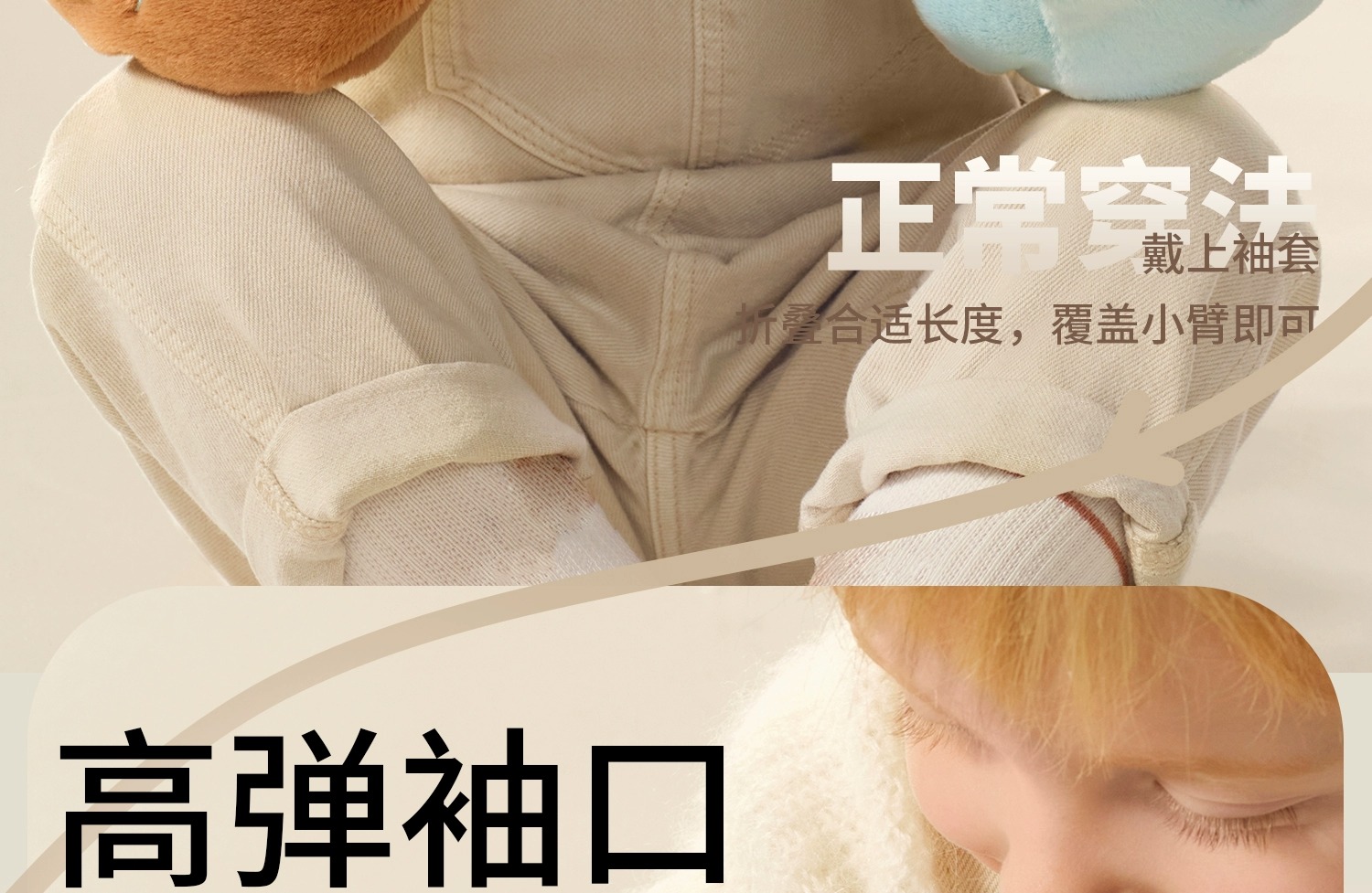 科巢儿童袖套女秋冬新款套袖男孩宝宝学生暖手防脏护袖手套袖套二合一