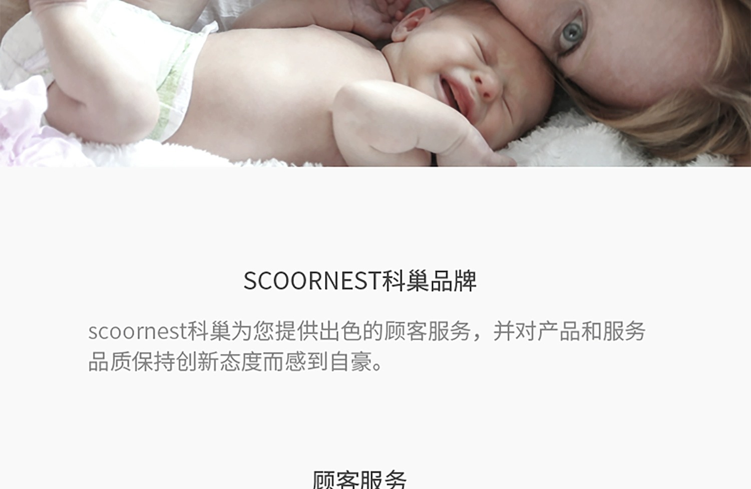 - Scoornest始终秉承给每一位宝宝送去科学的、关心的、创新的成长体验,通过提供商品和服务,使顾客形成守护、发展、巩固这种弥足珍贵的亲情的爱。