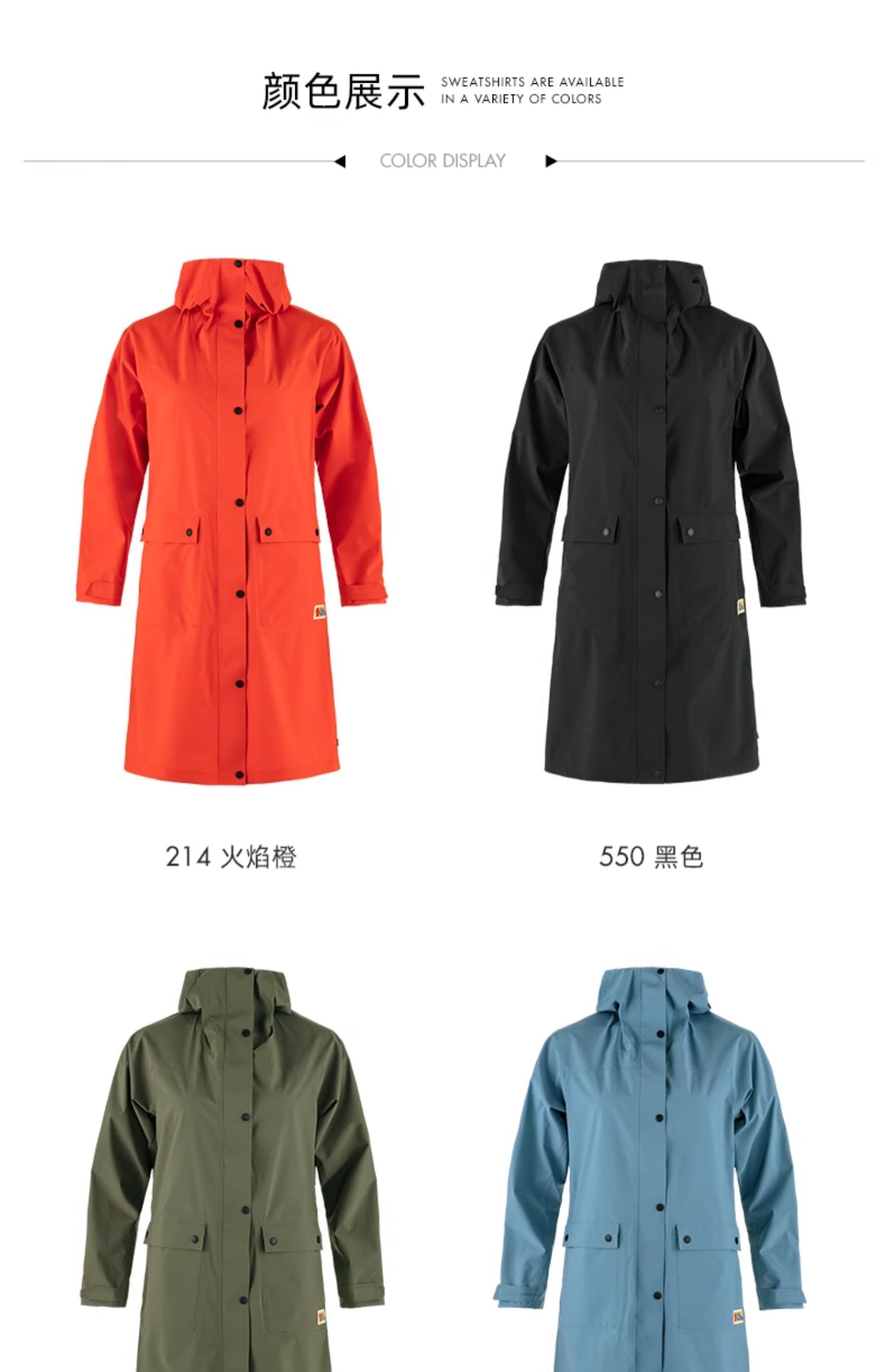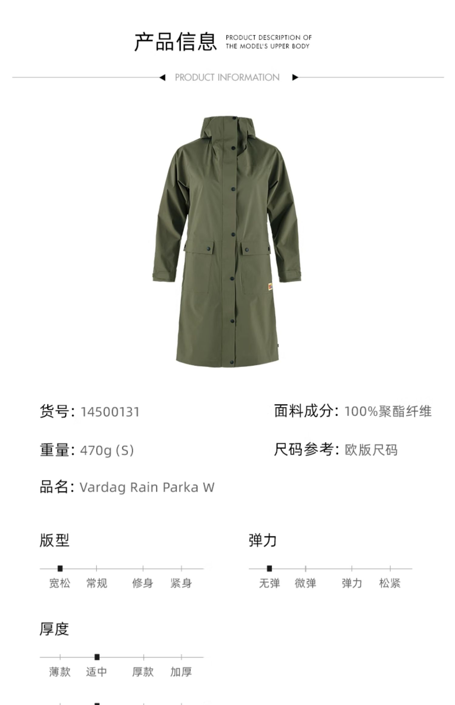 北极狐户外骑行日常女士防雨水长款宽松透气外套派克大衣14500131