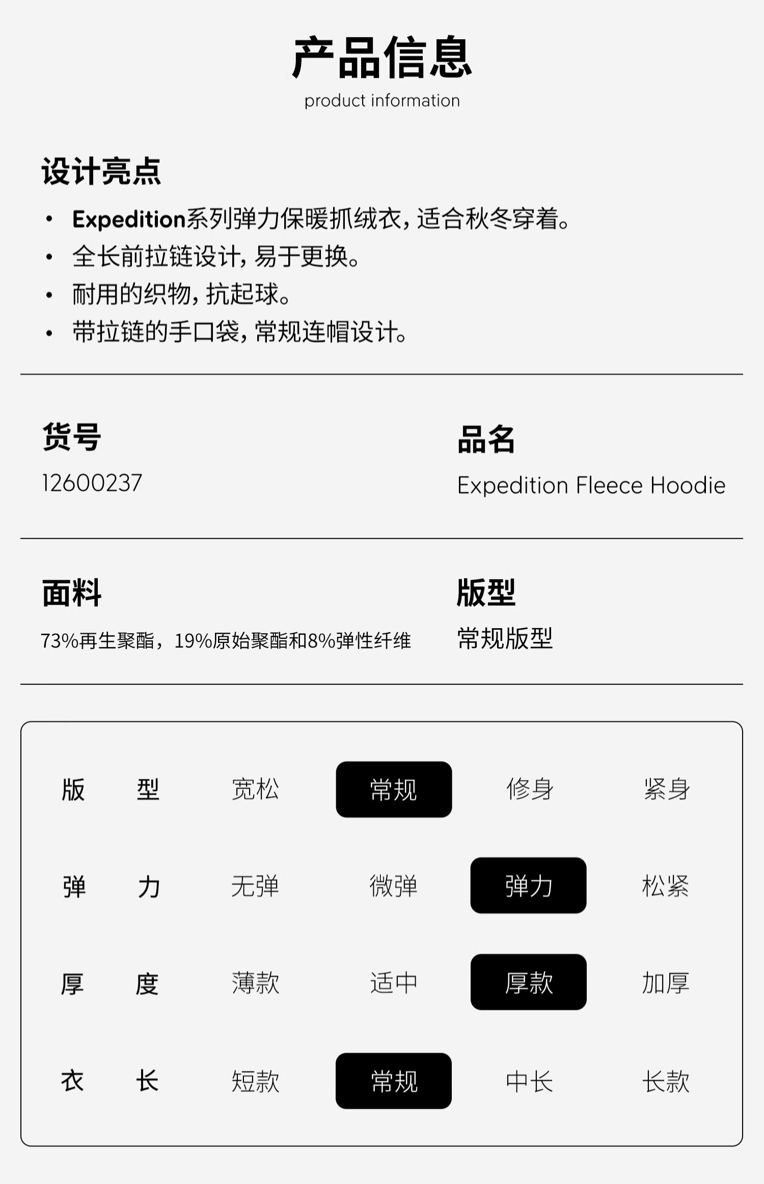 北极狐 男士抓绒休闲外套 2024秋冬 连帽抓绒夹克开衫12600237