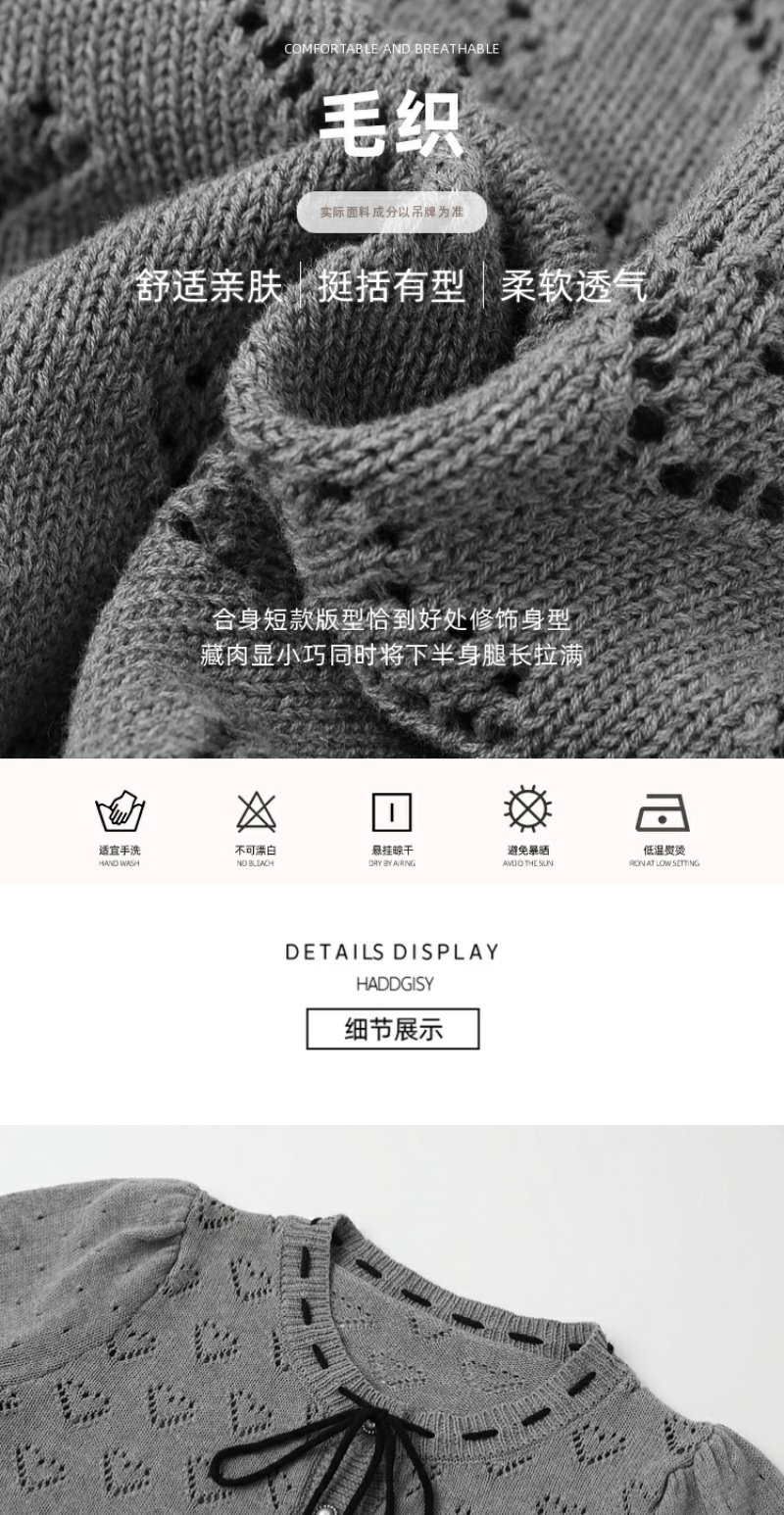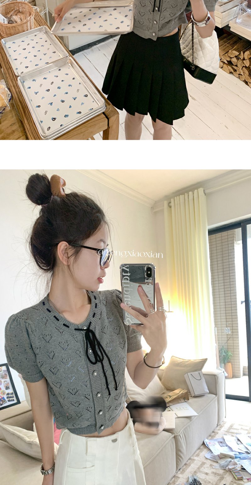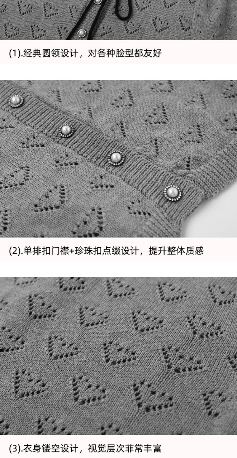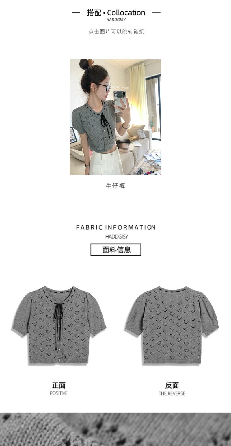 <曾小咸推荐>【时光唱片机】灰色镂空针织短袖上衣