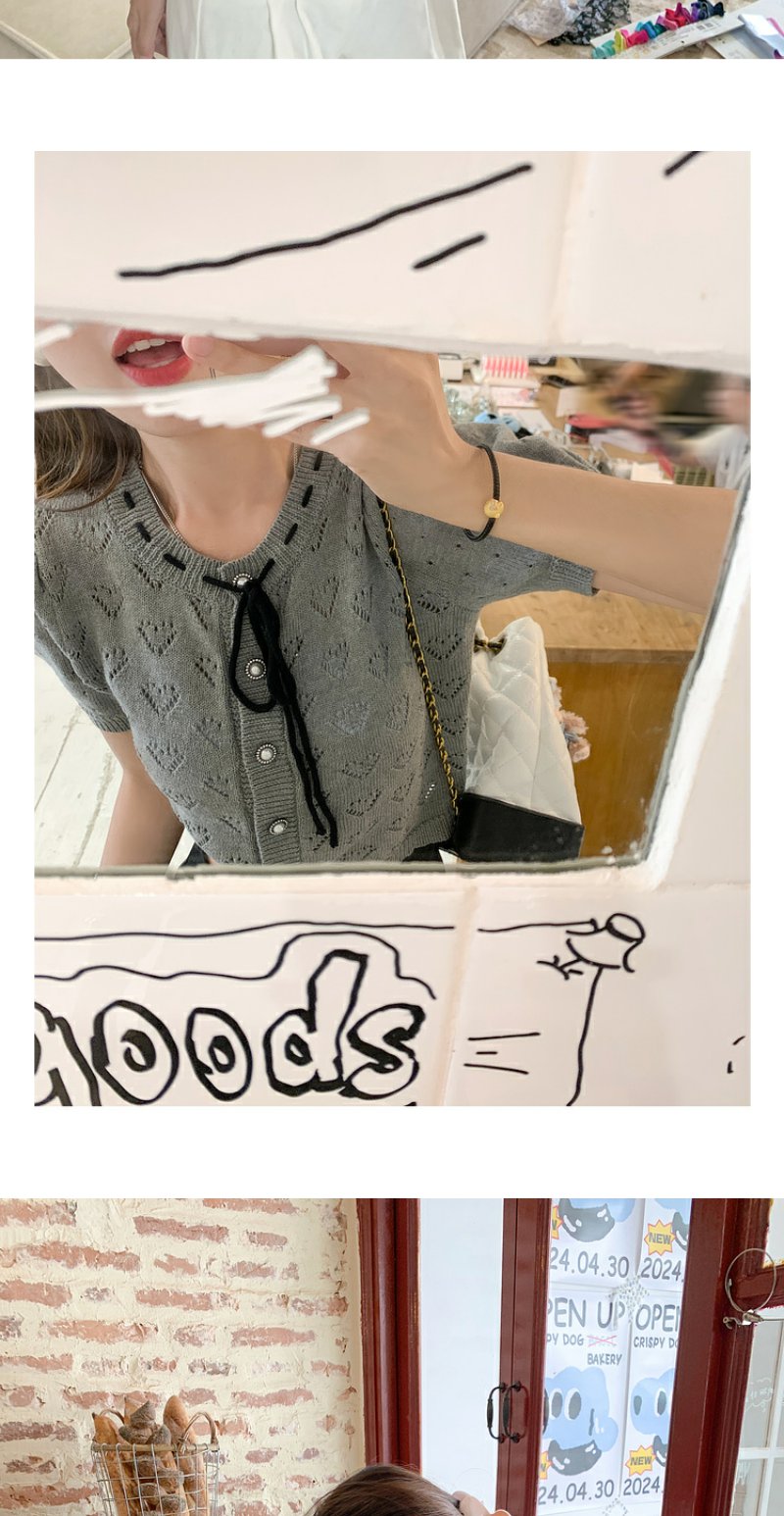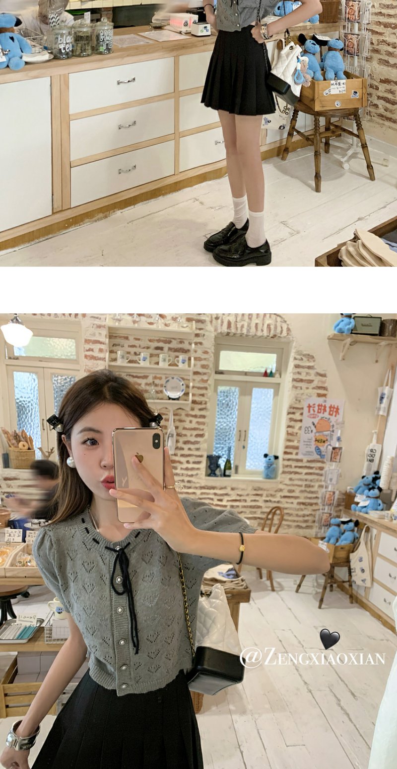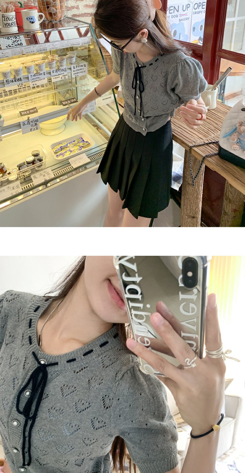 <曾小咸推荐>【时光唱片机】灰色镂空针织短袖上衣