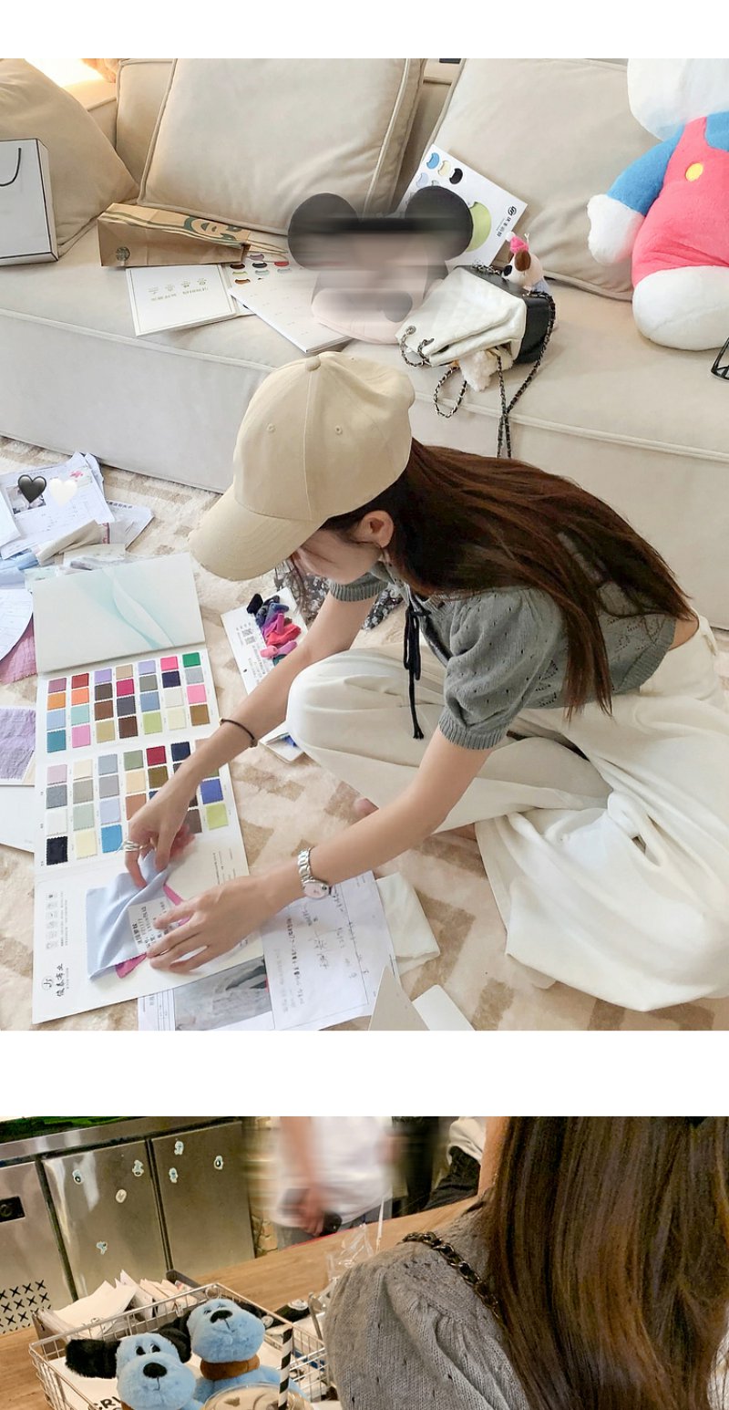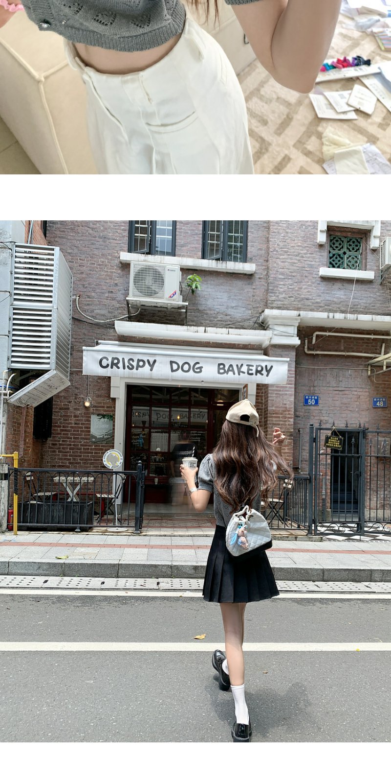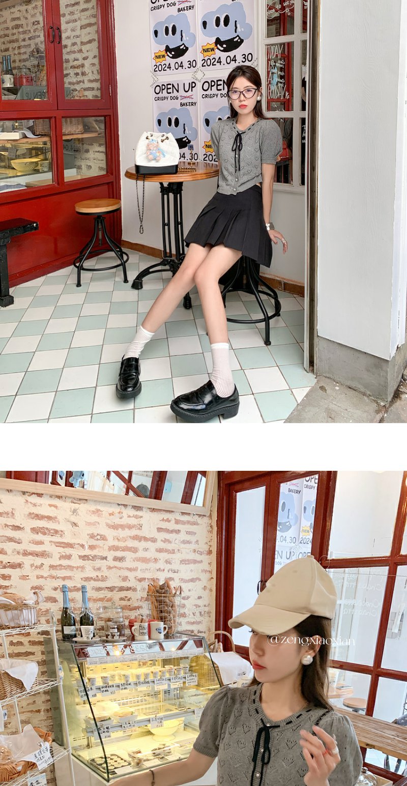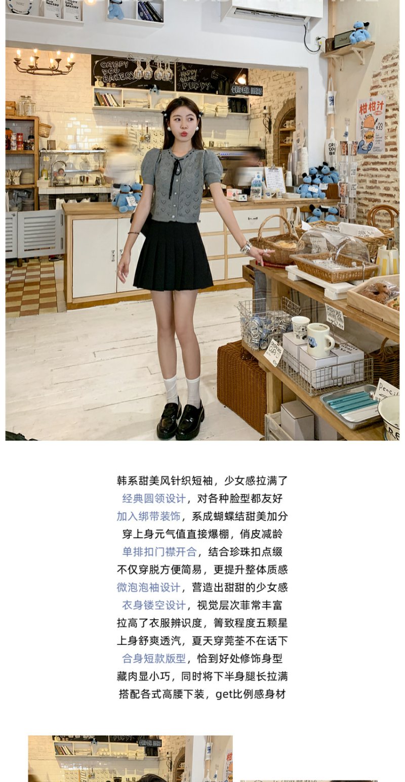 <曾小咸推荐>【时光唱片机】灰色镂空针织短袖上衣