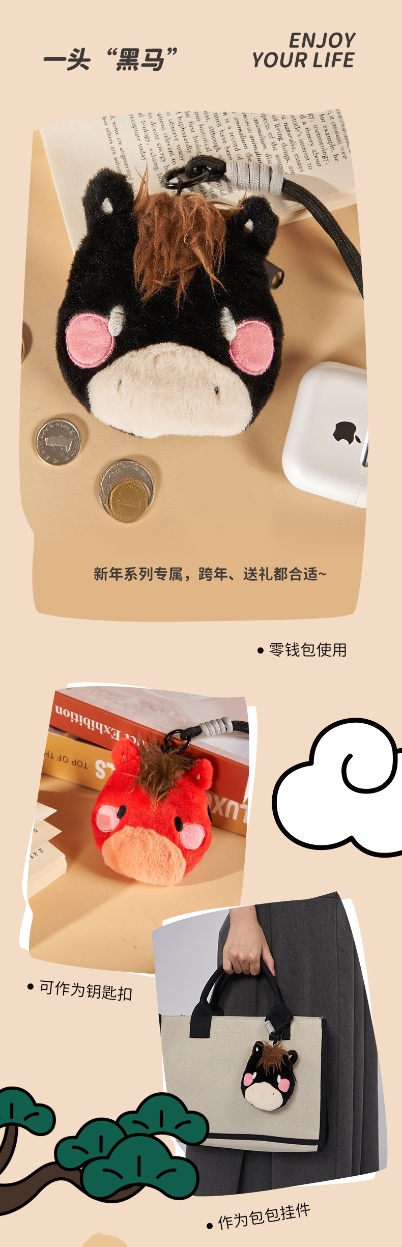 大英博物馆 新年系列 毛绒萌马双面零钱包