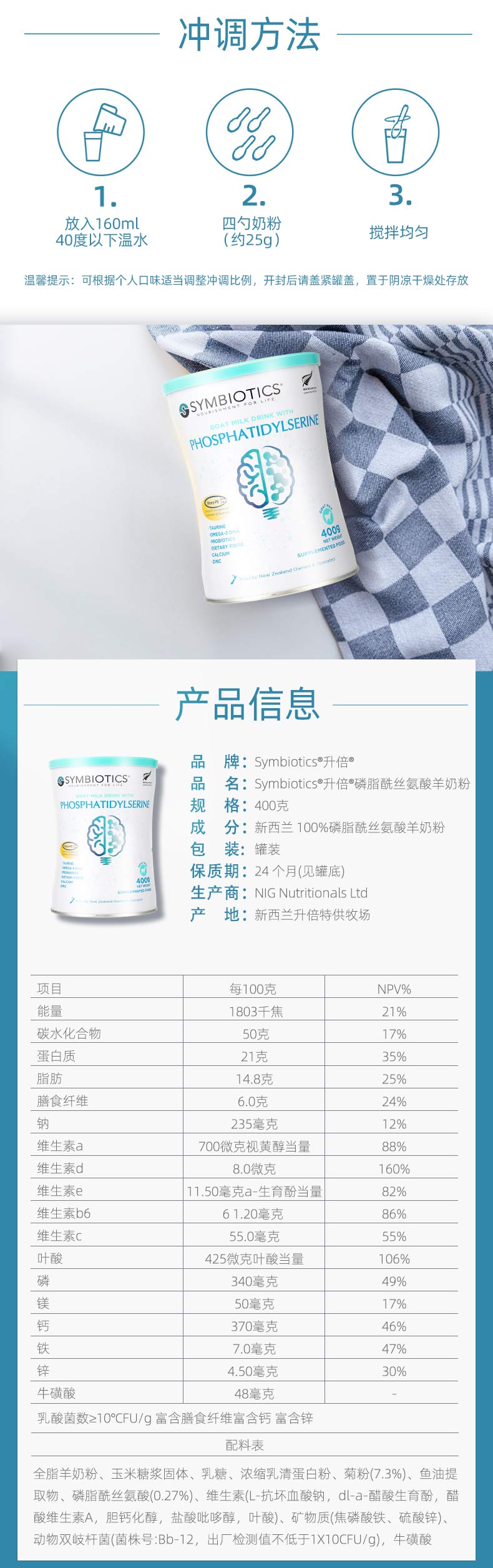 【新西兰进口】升倍磷脂酰丝氨酸羊乳粉(调制乳粉)400g/罐*3罐套装(买2罐送1罐)
