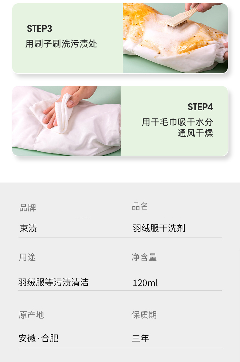 【自营】束渍-羽绒服干洗剂免水洗清洗剂强力去污渍衣物去油渍(120ml) SUZHI-040