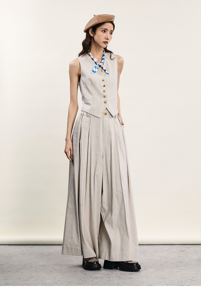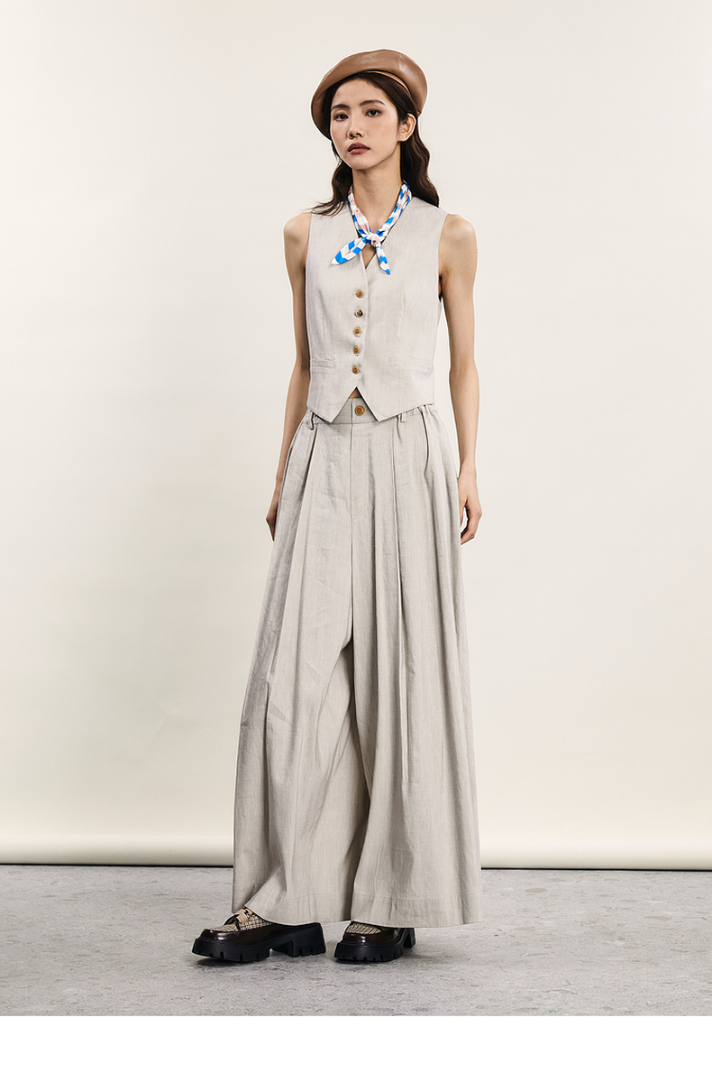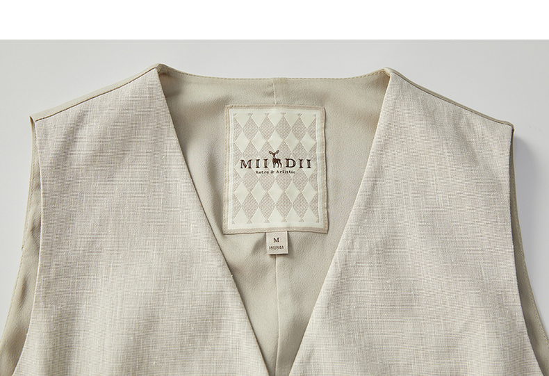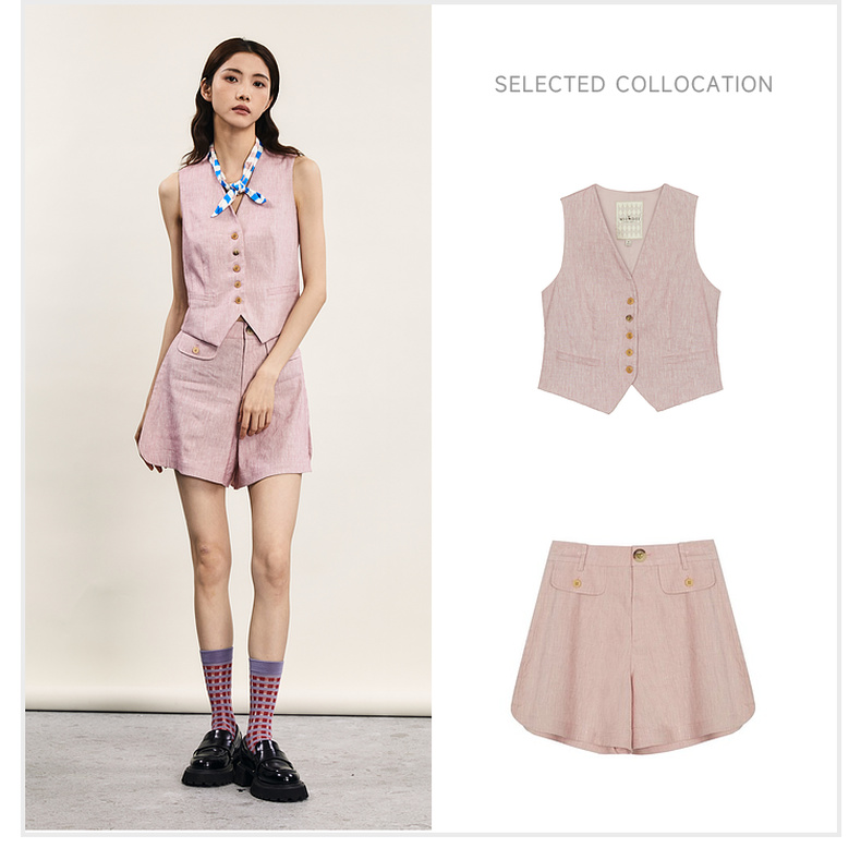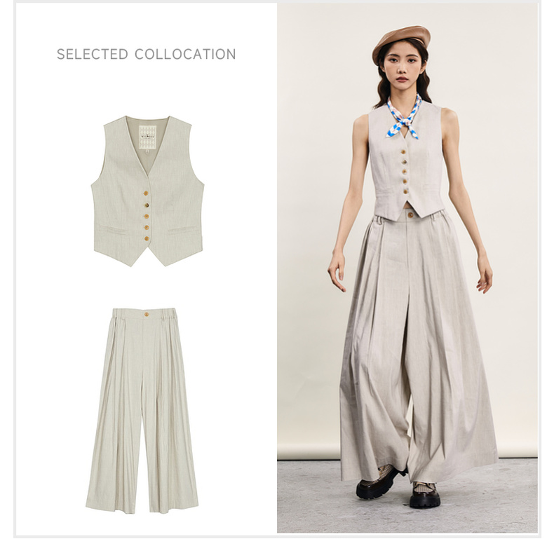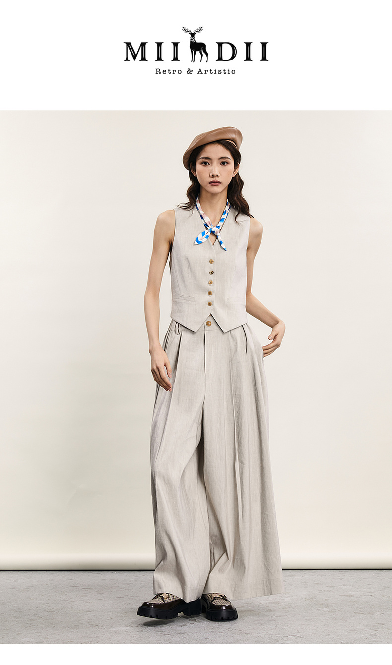 谜底短款马甲女士2024年夏新品复古风V领无袖上衣配丝巾242MM0552