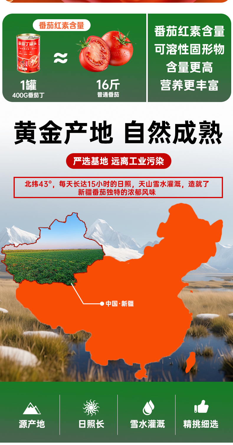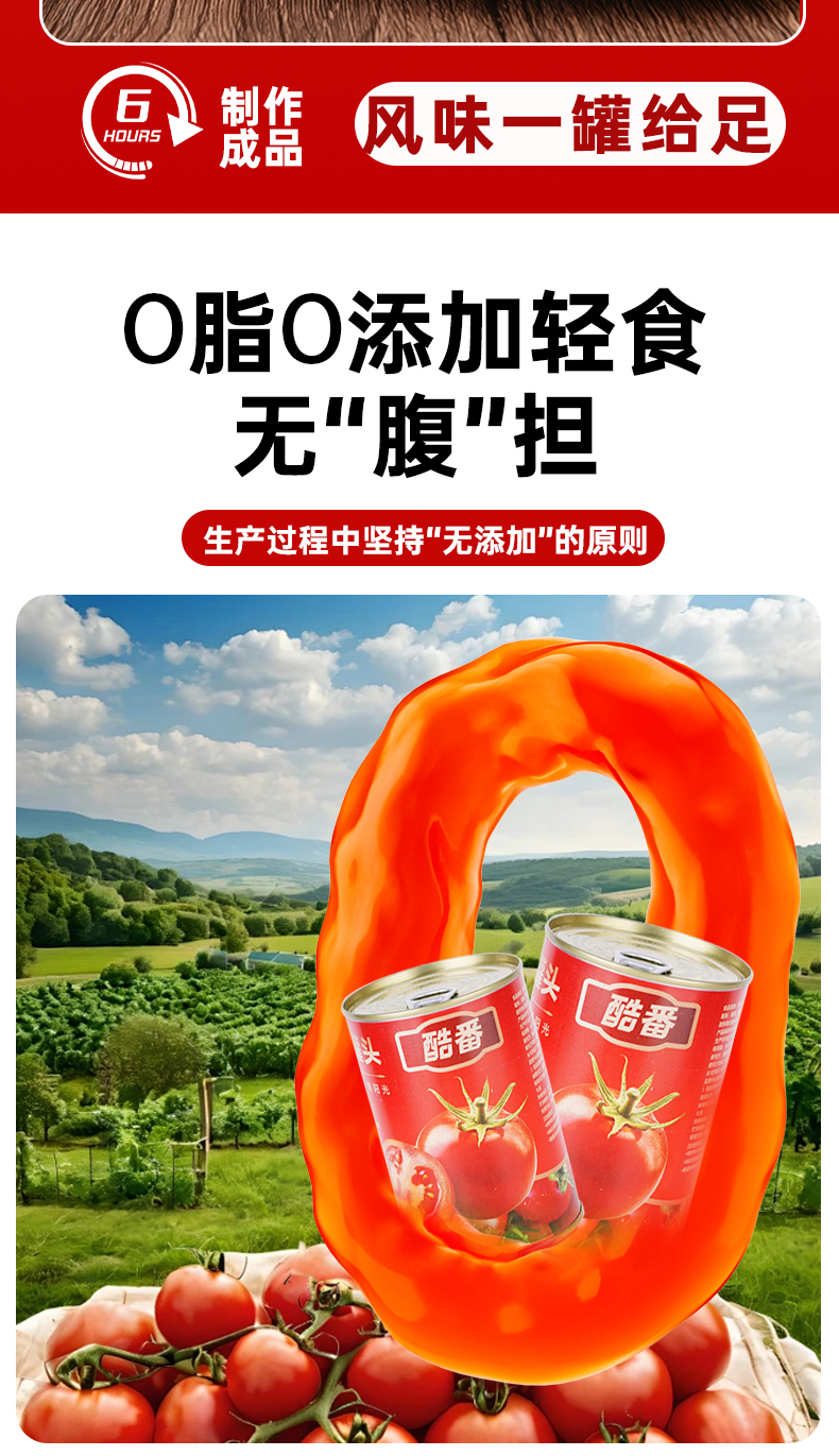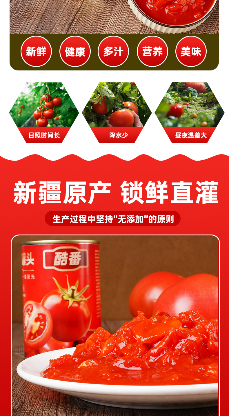 【自营】酷番 新疆蕃茄丁罐头 400g*6罐