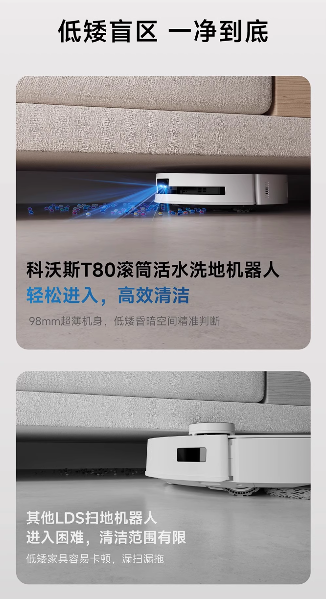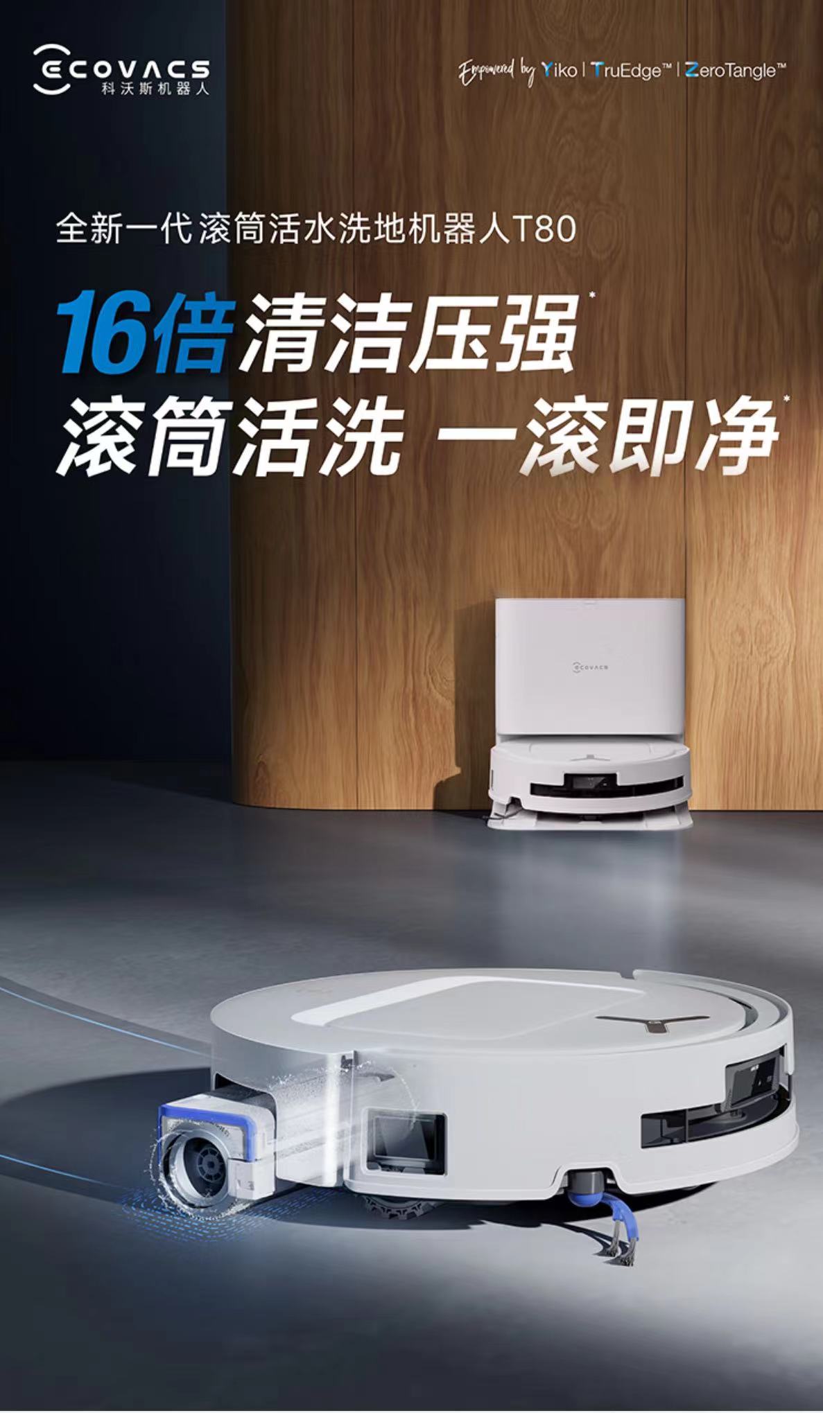 科沃斯-T80(白)扫地机器人 滚筒活扫拖一体自动清洗【科沃斯】