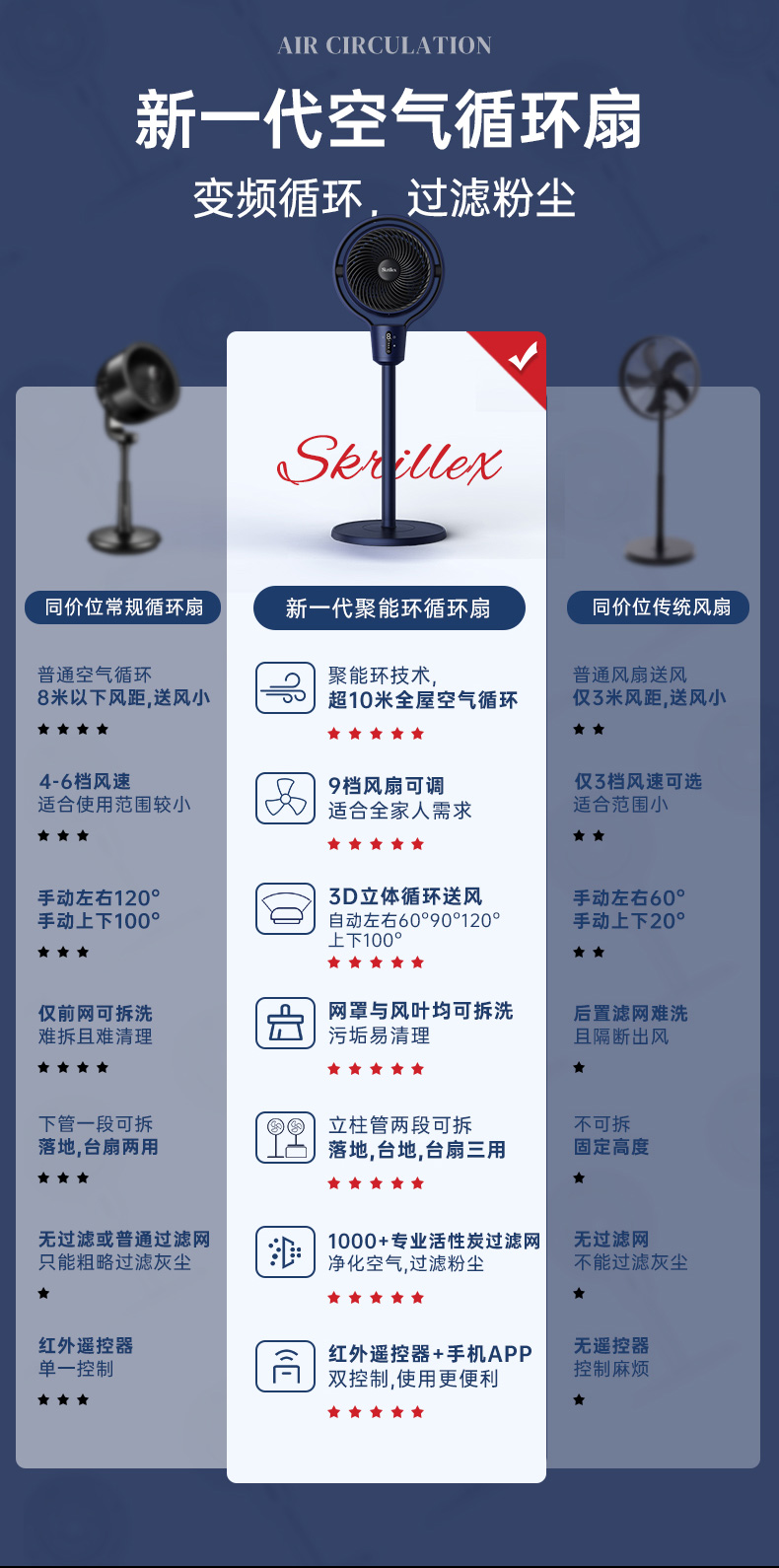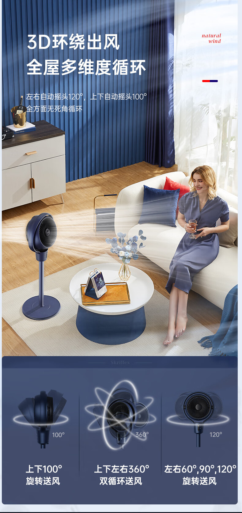 【小家电】Skrillex柯乐希落地扇家用空气循环扇台式智能电风扇桌面客厅静音办公宿舍遥控机械趴地扇HF