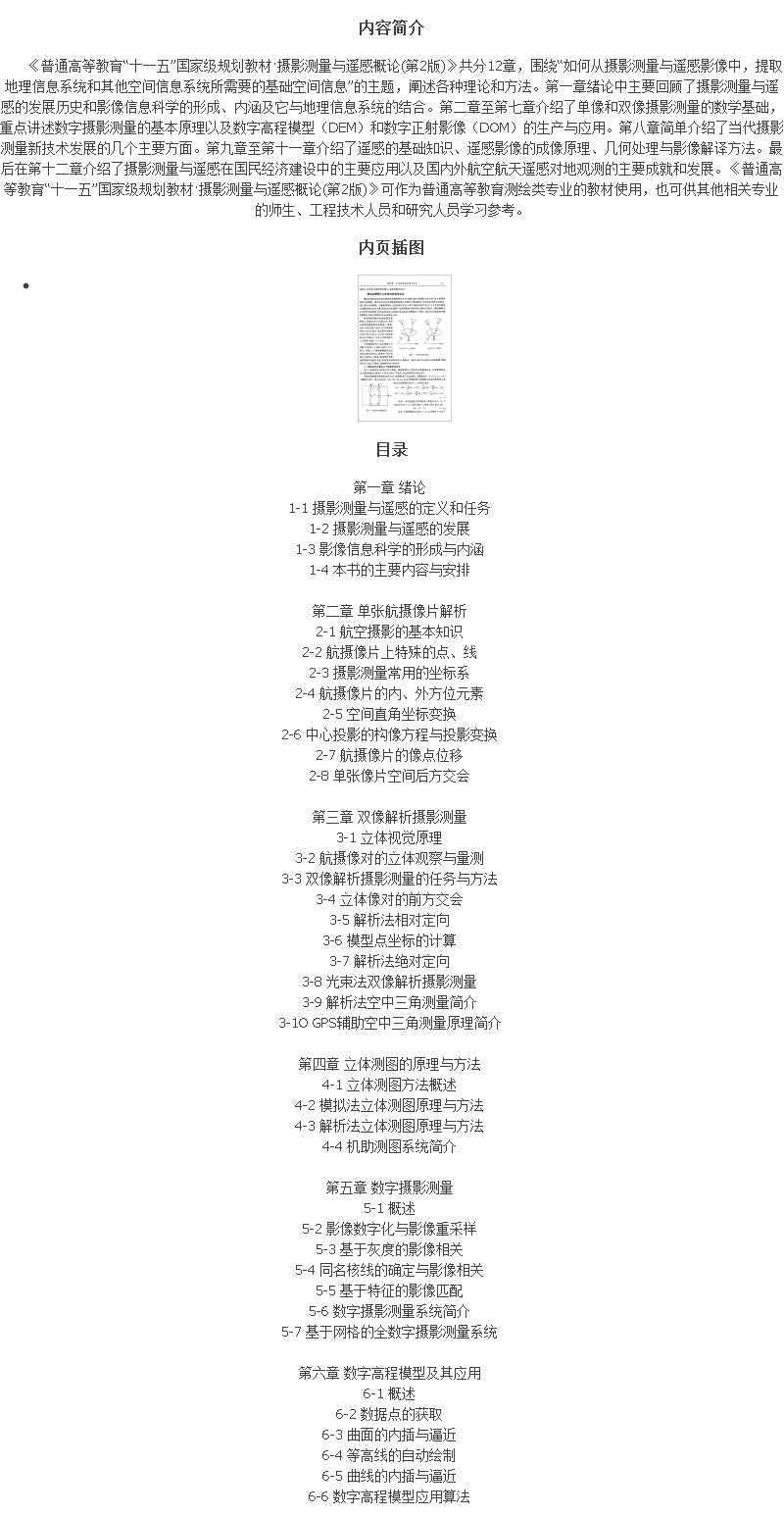 《摄影测量与遥感概论(第2版)/普通高等教育“十一五”国家级规划教材》(李德仁,等)