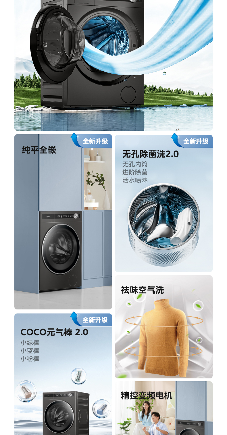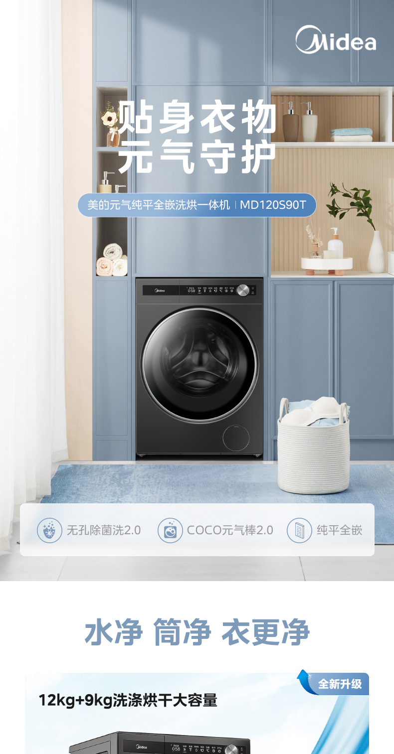 美的 MD120S90T 洗衣机 滚筒洗干一体机 松露灰 220V,1Ph 50Hz 转速1200 不带银离子