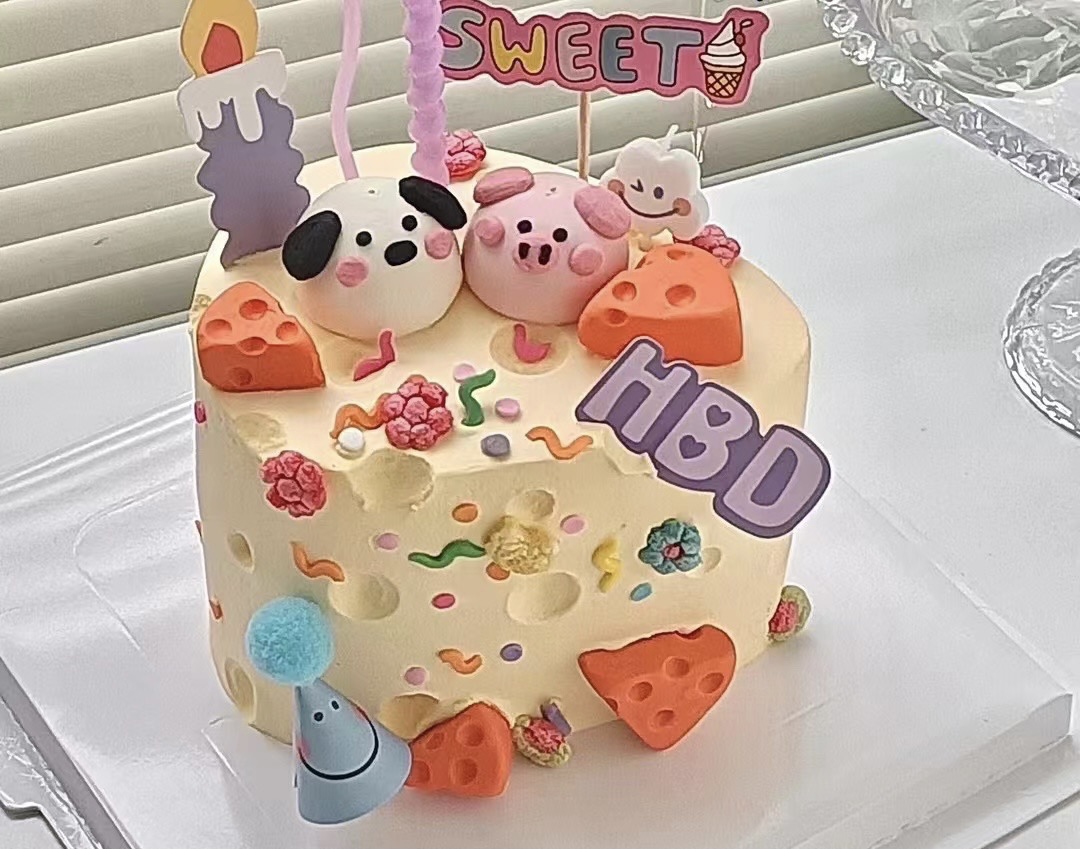 手绘星黛露兔子复古蛋糕-低糖处理无添加